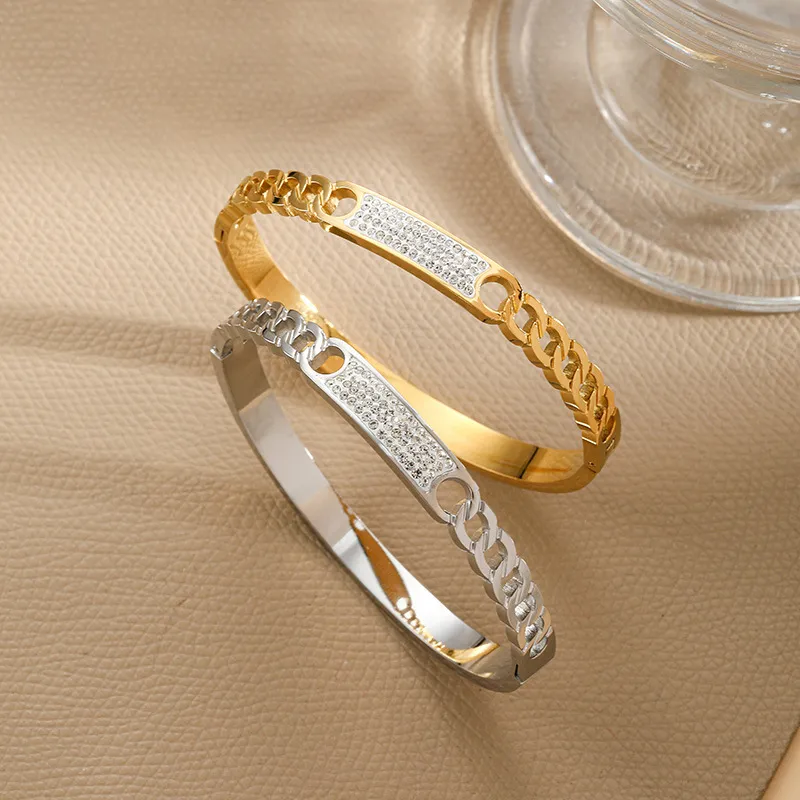 Versatile Hollow Strap-shaped Bracelet Clay Diamond Buckle Stainless Steel Ornament Women's Wear