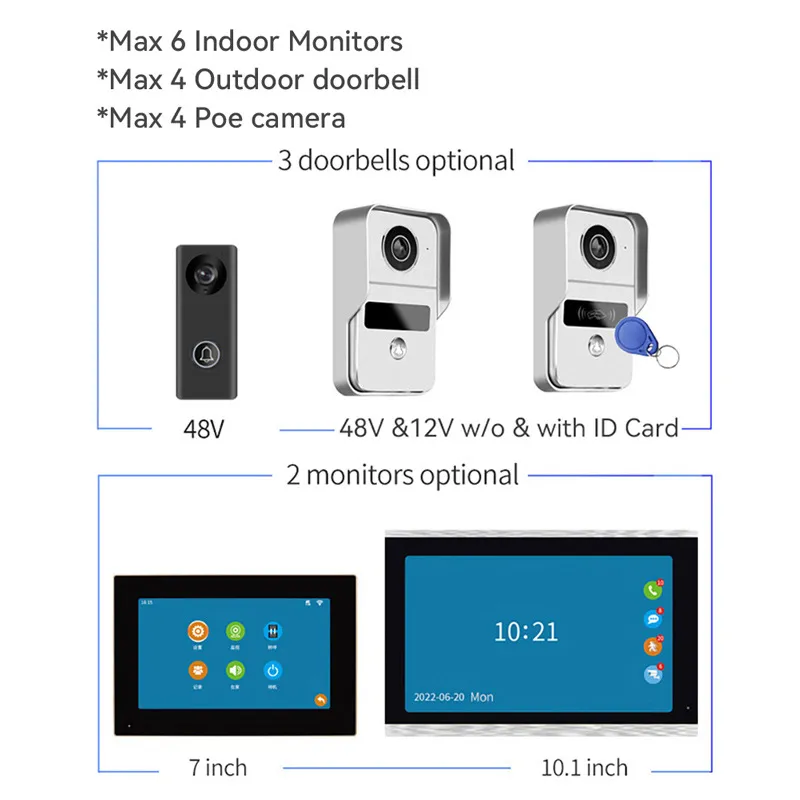 For larger homes or multi-story buildings, the system supports multiple indoor monitors, allowing you to monitor the entrance from different locations within your home.