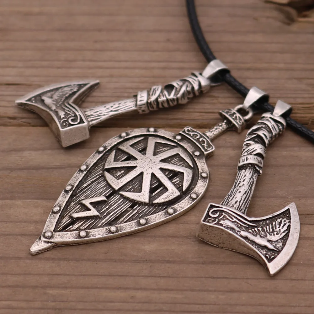 Viking Double Axe and Leaf Necklace Rune Pendant