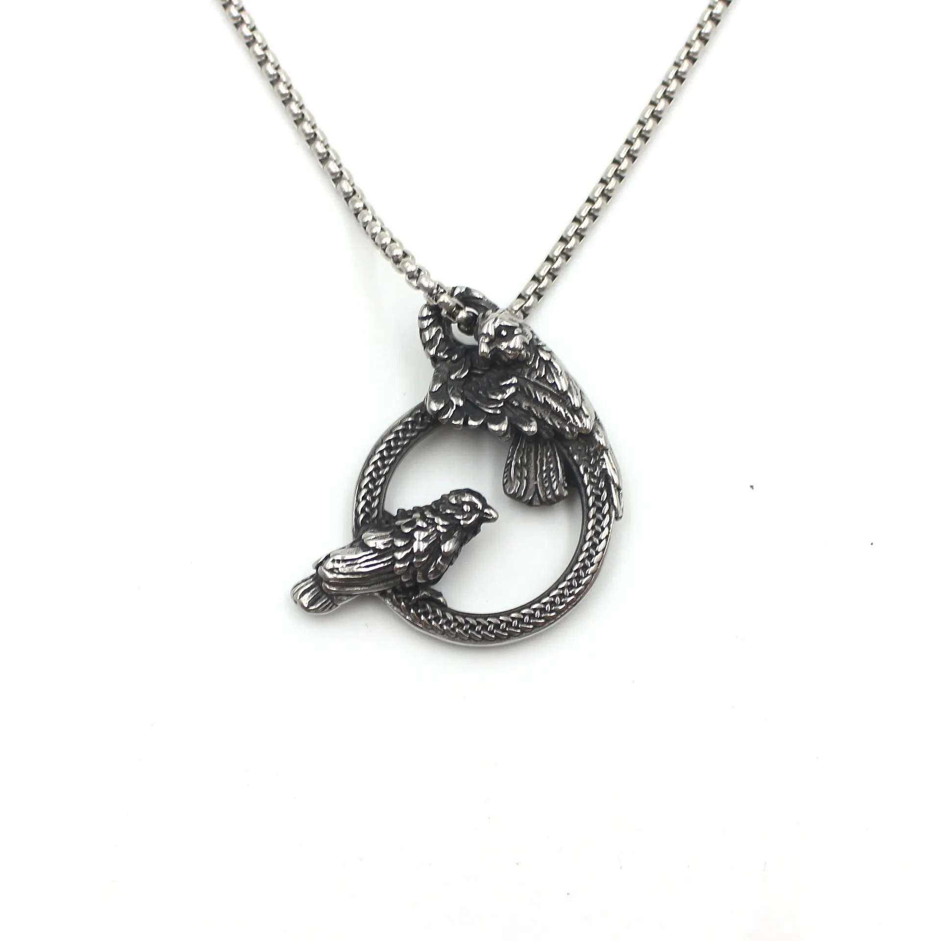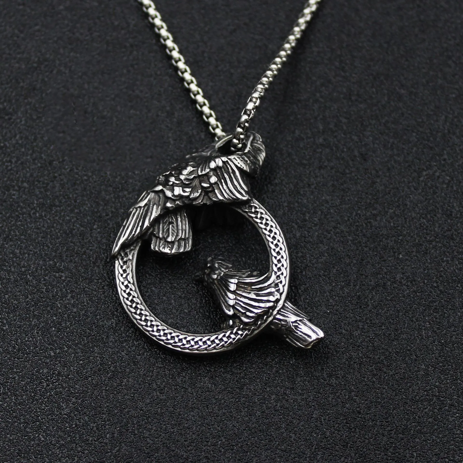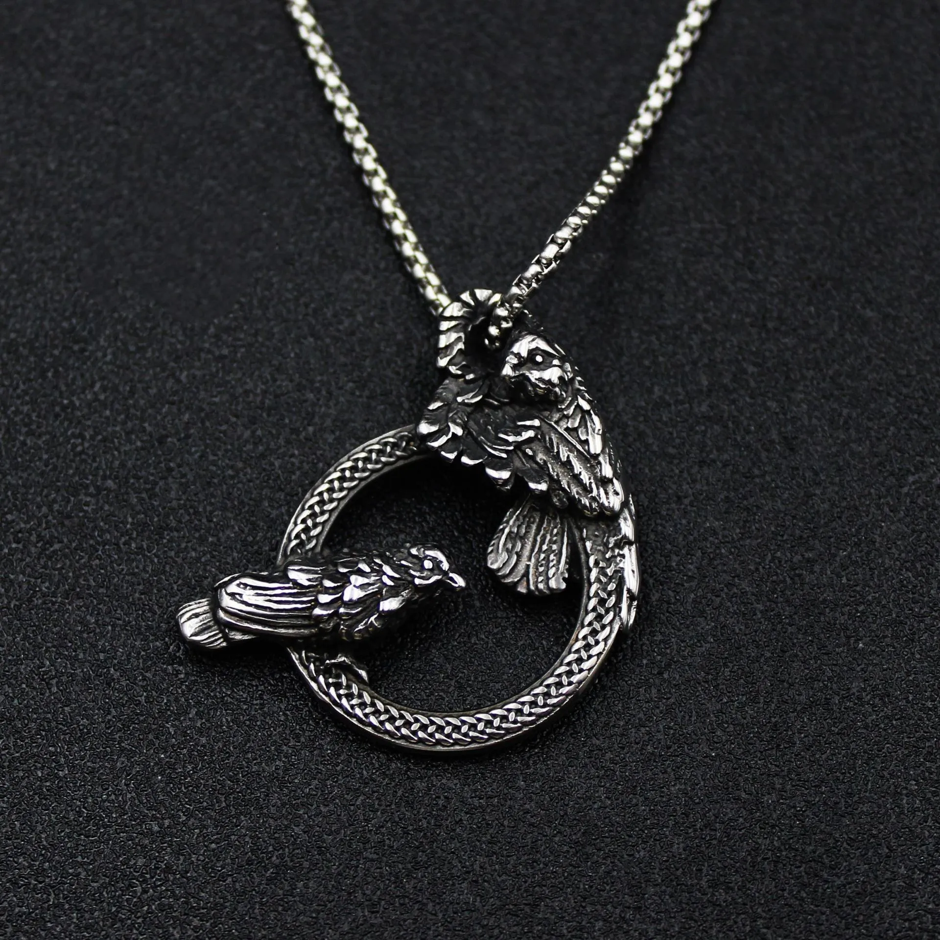 Viking Ring Crow Pendant Retro Trendy Titanium Steel Necklace