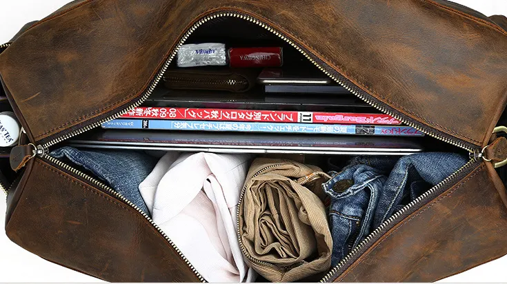 both casual and formal occasions. Elevate your travel experience with the Vintage Crazy Horse Leather Men's Travel Large Capacity Tote,