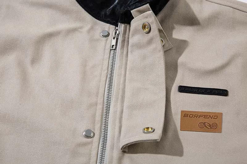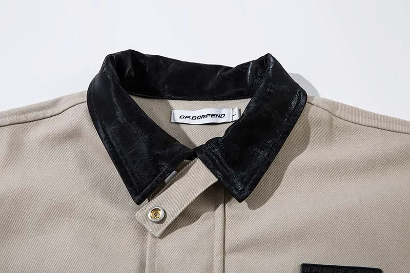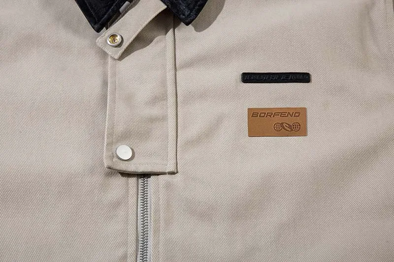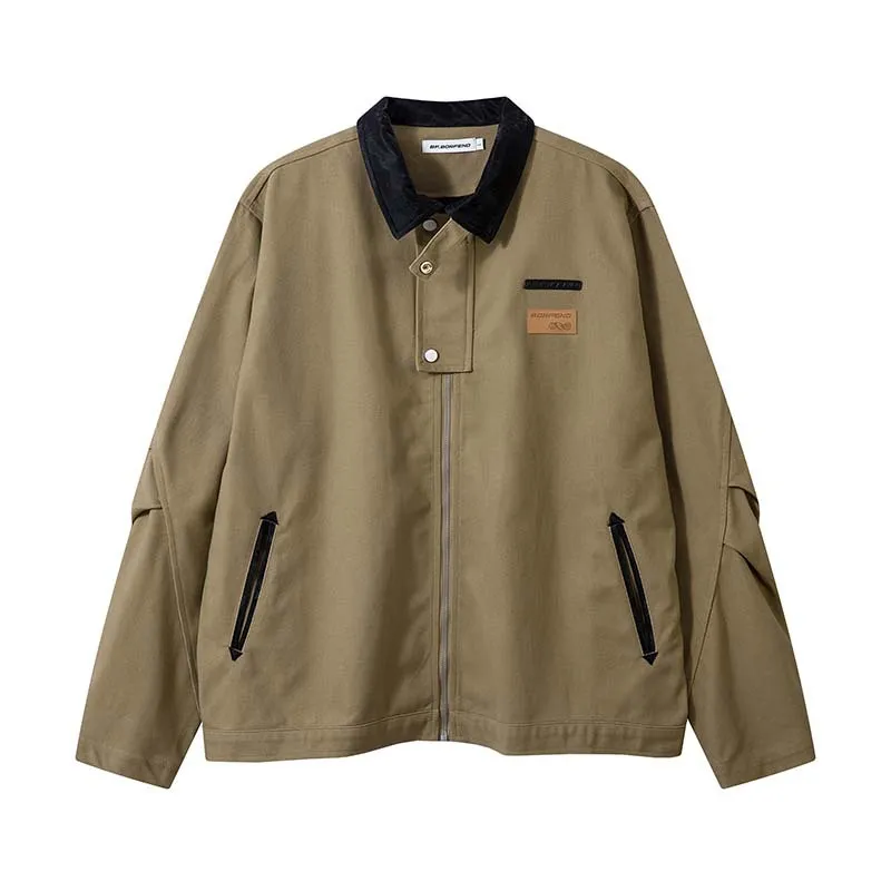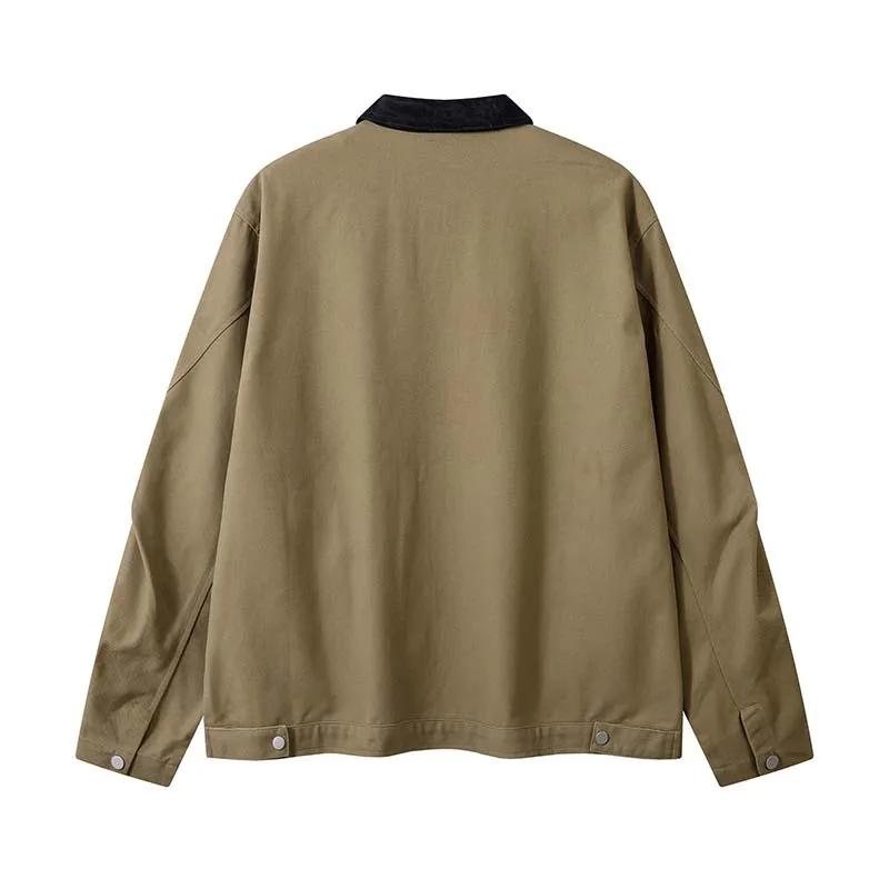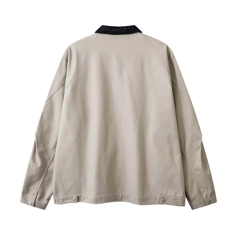 Vintage Crumpled Letters Polo Collar Jacket Men's Clothing Baggy Coat