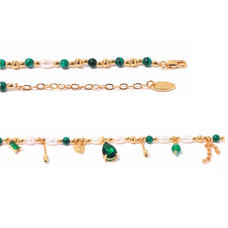 Material: Gold-plated Brass, Natural Pearls, Zircon, Natural Stone