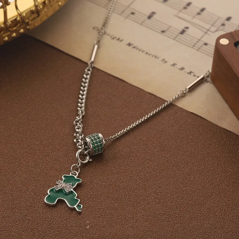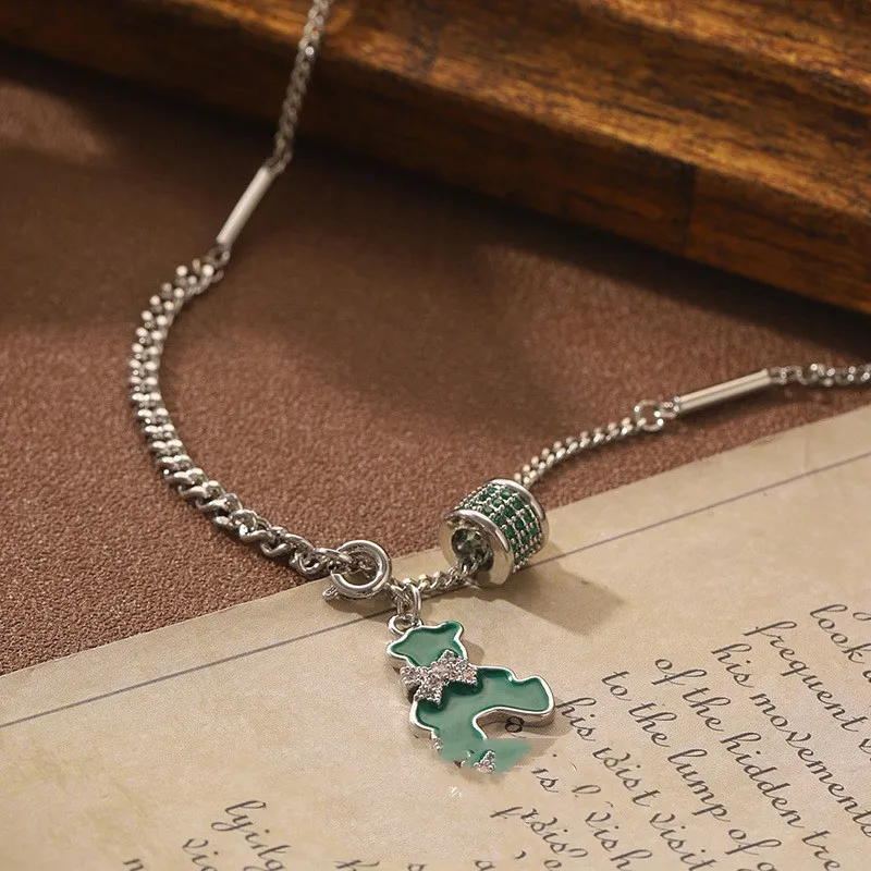 Vintage Green Bear Pendant Necklace