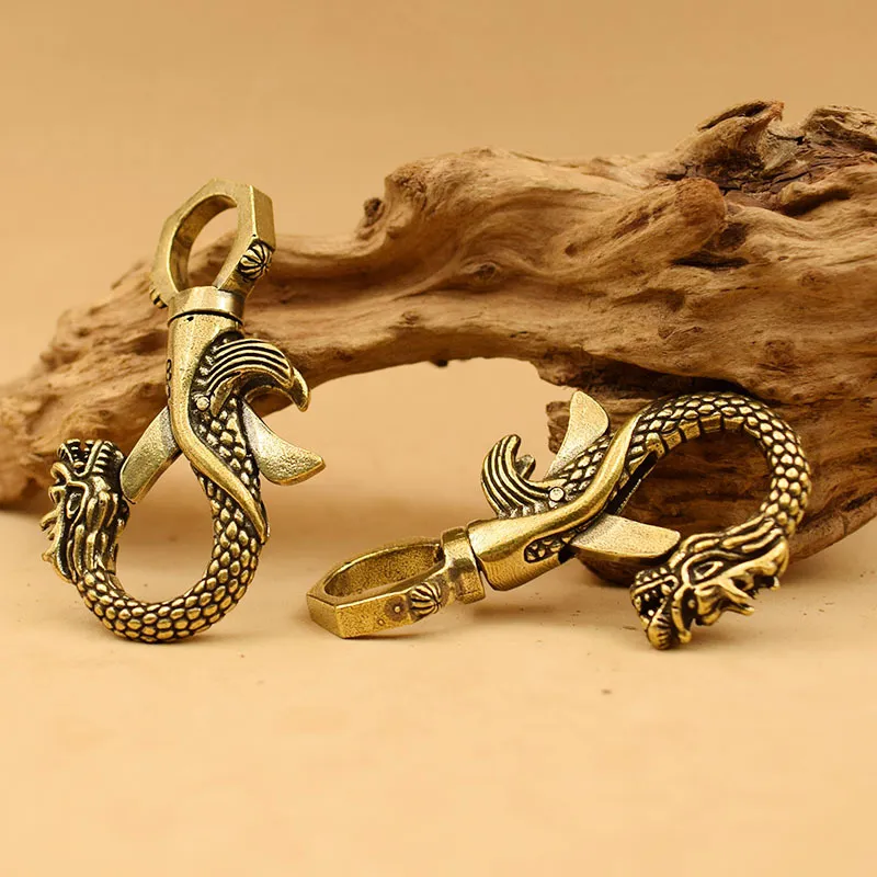 Vintage Handmade Brass Dragon And Phoenix Keychain Twelve Zodiac Signs