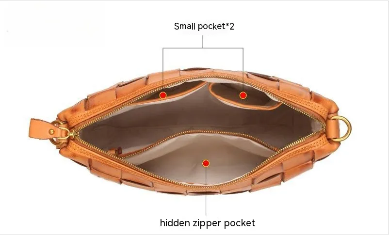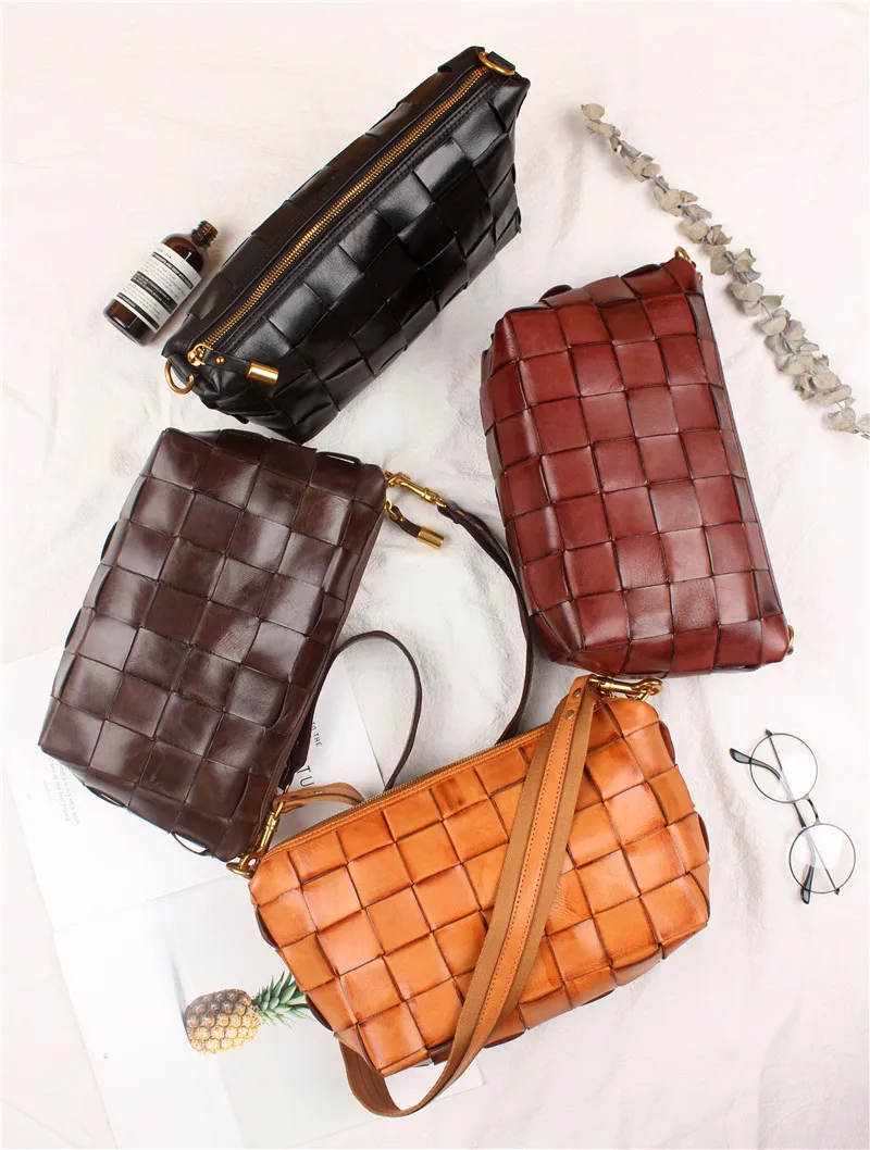 Vintage Handwoven Shoulder Bag With Vegetable Tanned Top Layer Cowhide