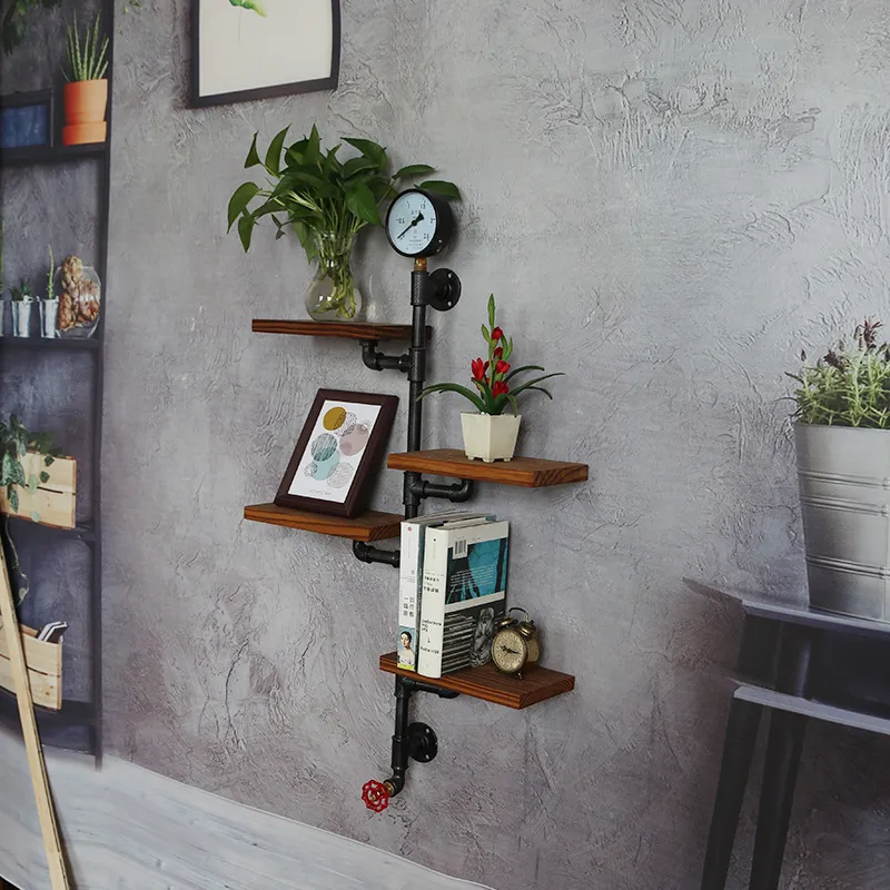 Industrial Charm: The vintage iron pipe and rustic wood or metal shelves bring an industrial vibe to your space, adding