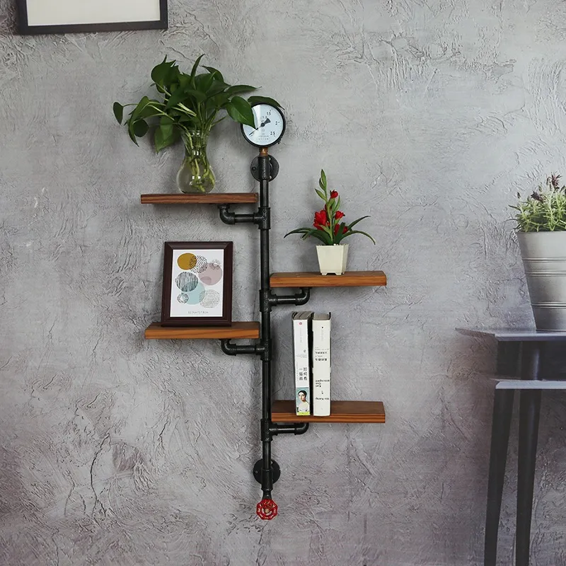 Industrial Charm: The vintage iron pipe and rustic wood or metal shelves bring an industrial vibe to your space, adding