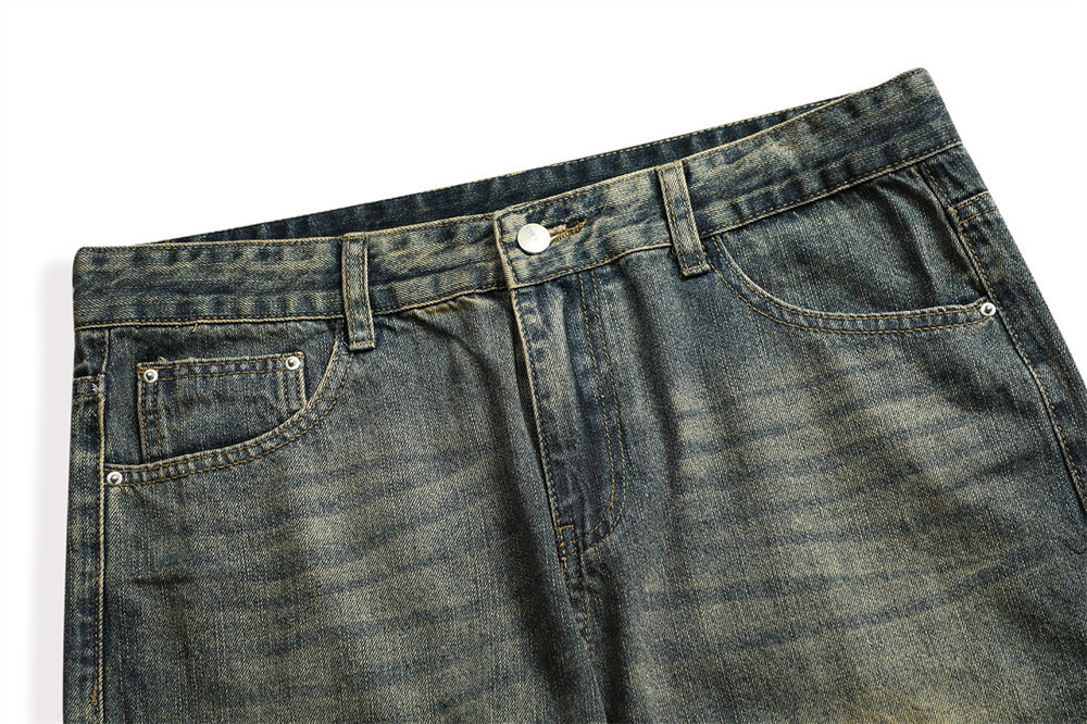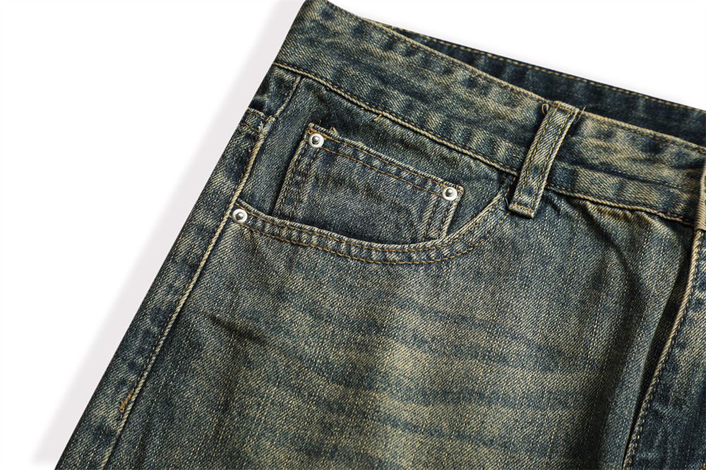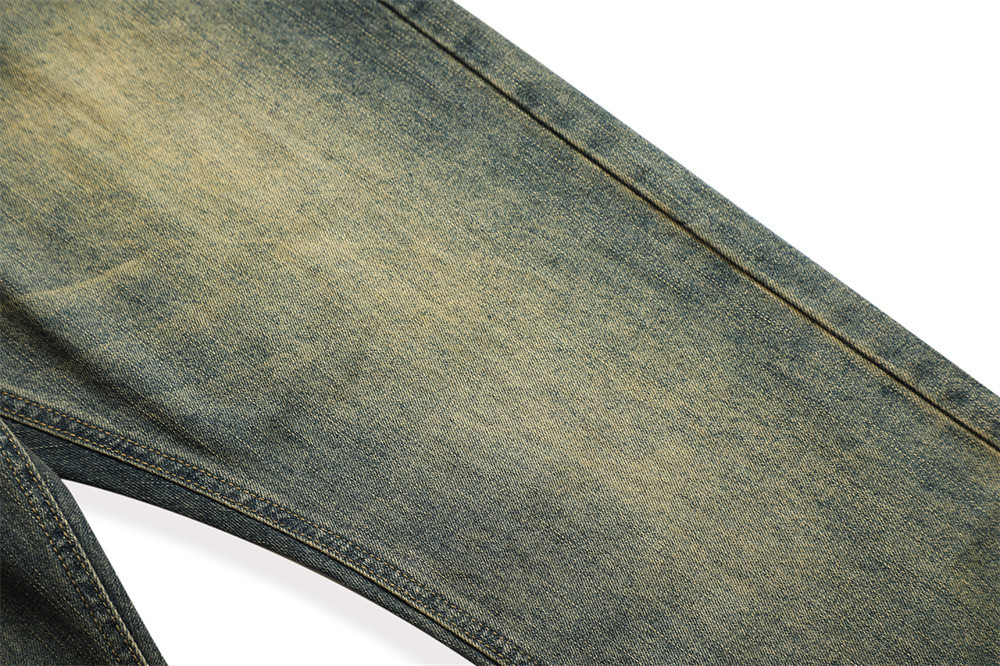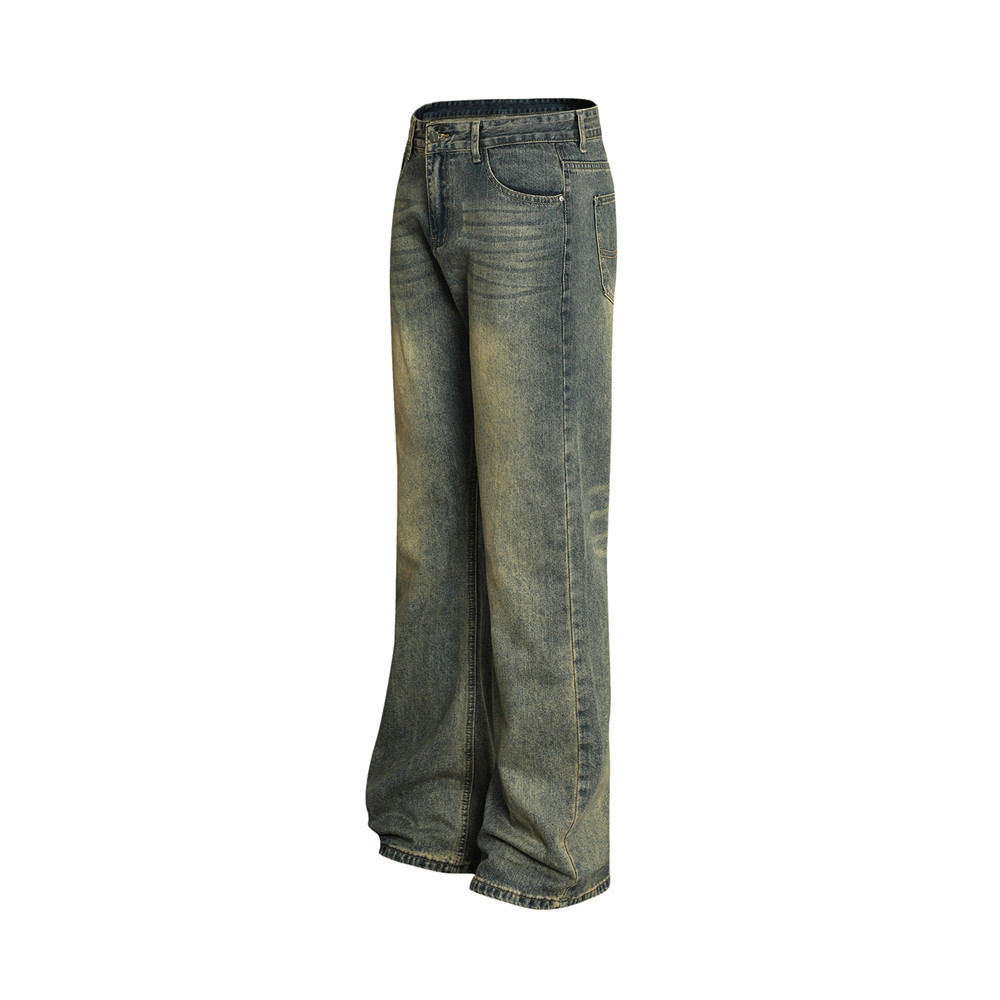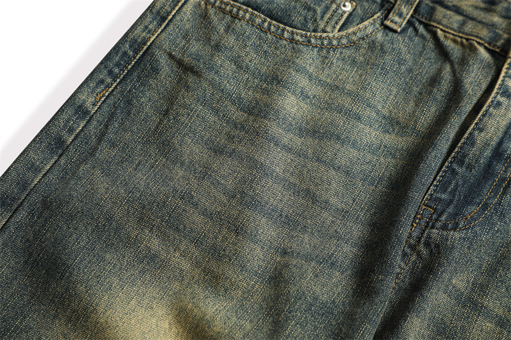 Vintage Men's Loose Yellow Mud Dyed Jeans