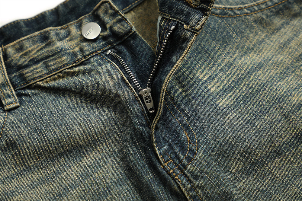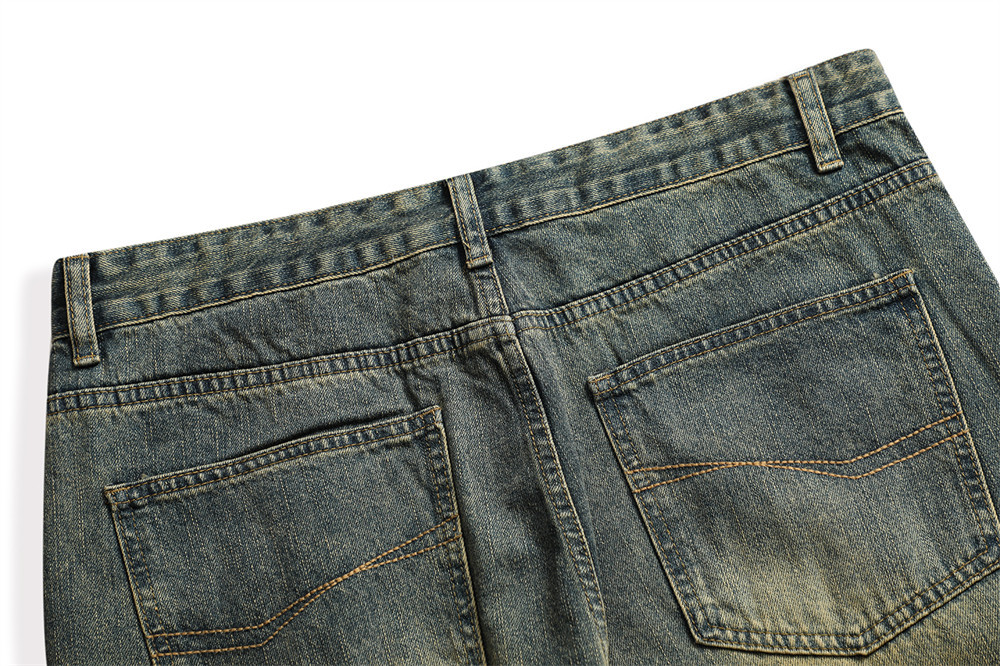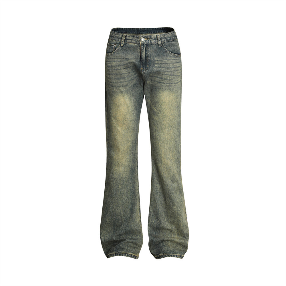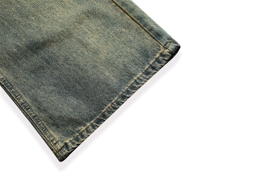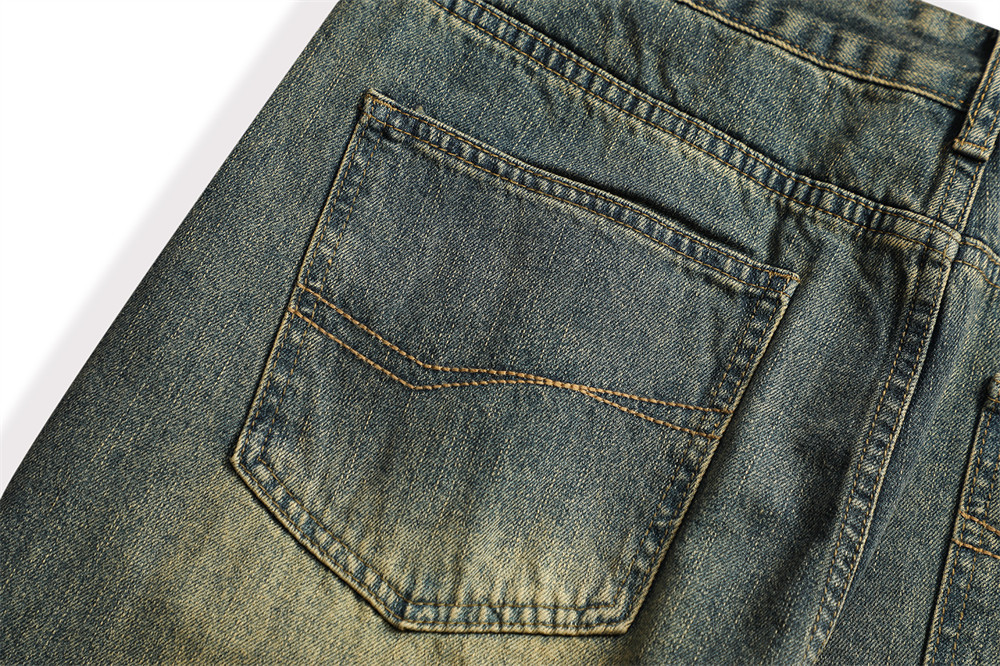Vintage Men's Loose Yellow Mud Dyed Jeans