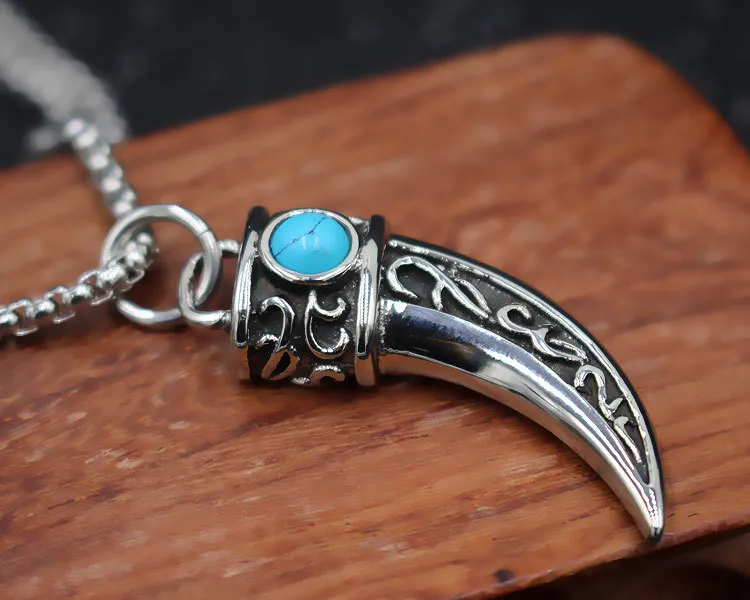 Benefits of the Vintage Men's Titanium Steel Wolf Tooth Blue Pine Stone Pendant