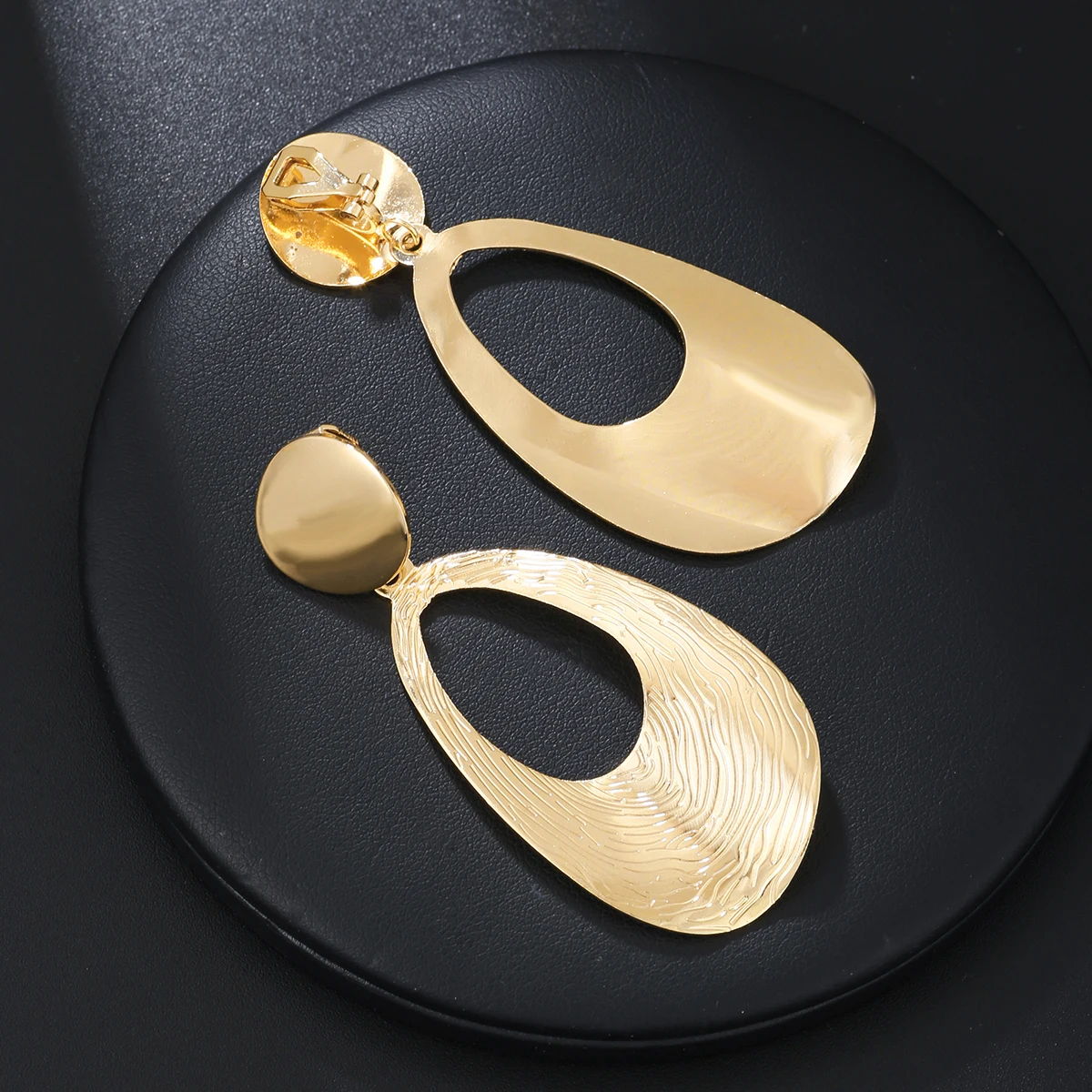 Whether you're looking for a way to add vintage charm to a modern outfit or simply want a unique accessory to complement your style, the Vintage Metal Water-Drop Clip-On Earrings are the perfect choice. Their timeless design and bold geometric form make them an essential addition to any jewelry collection.
