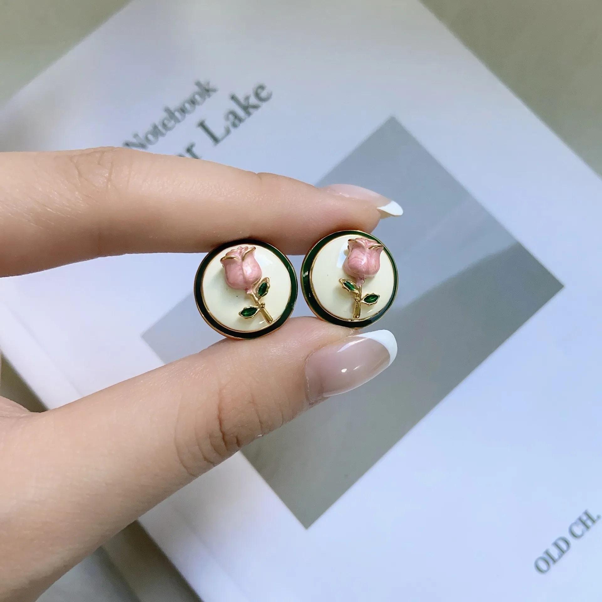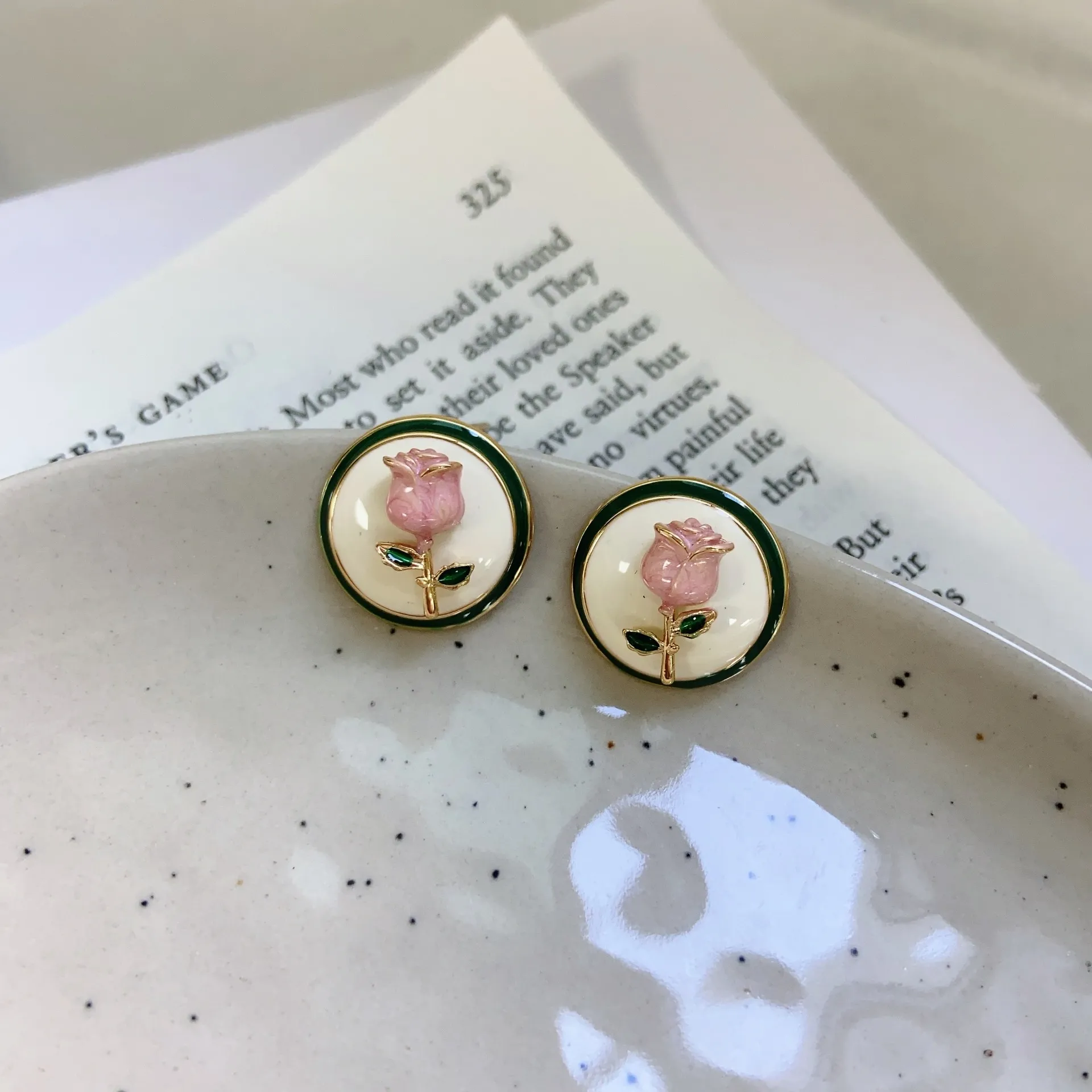Vintage Rose Stud Earrings For Women Trendy Earrings
