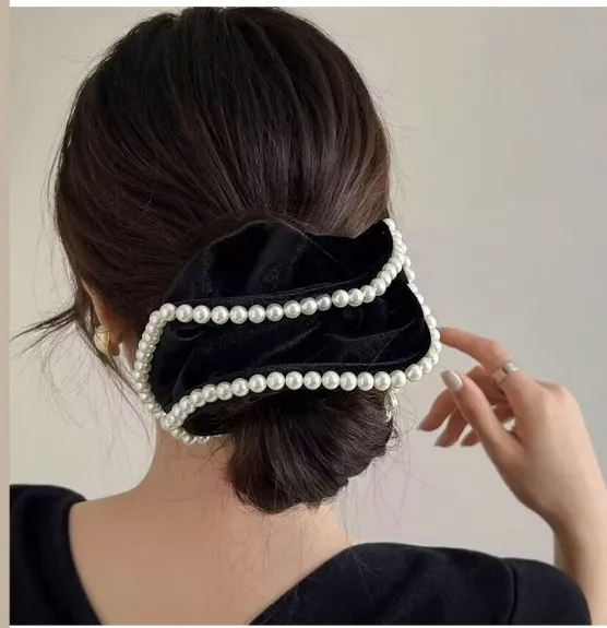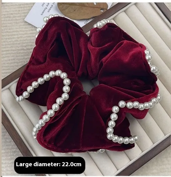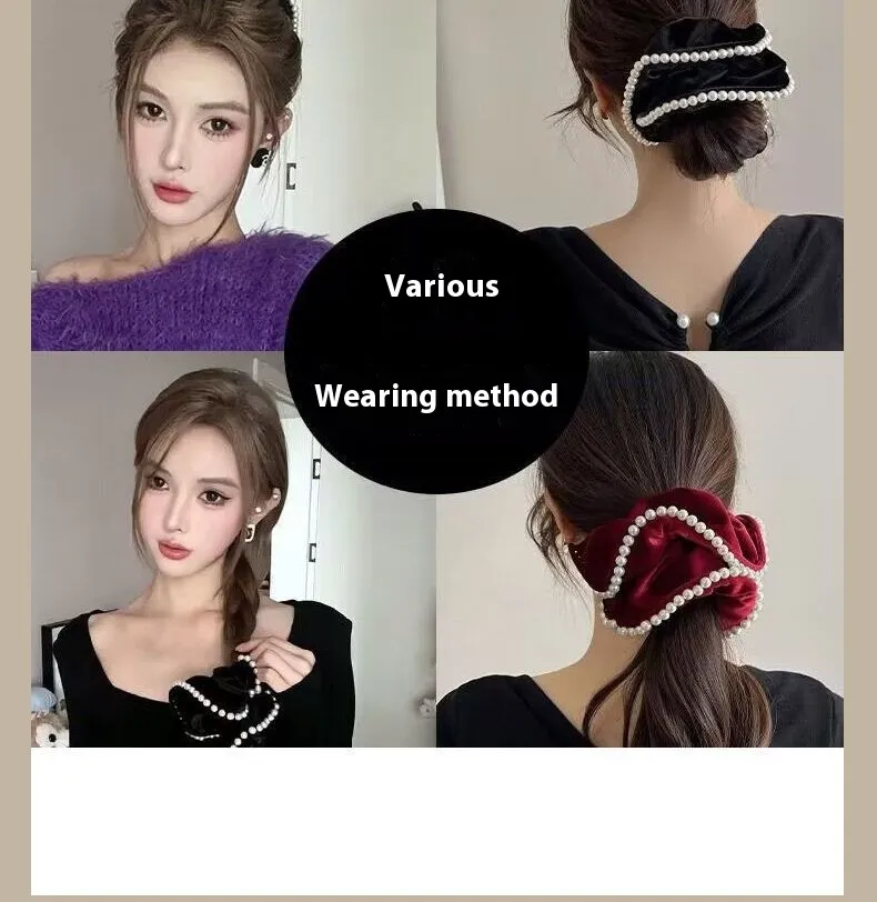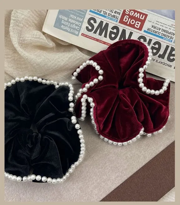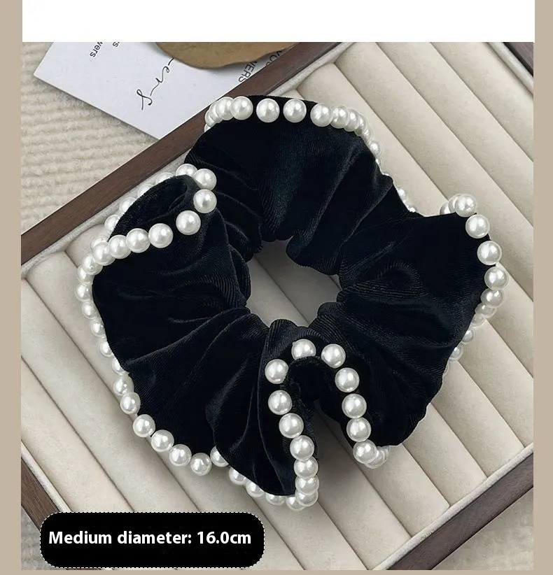 Vintage Velvet Beads Hair Ring Temperament Oversized Flocking Classic Style All-matching Elegant Fashion High Elastic Black Hair Rope