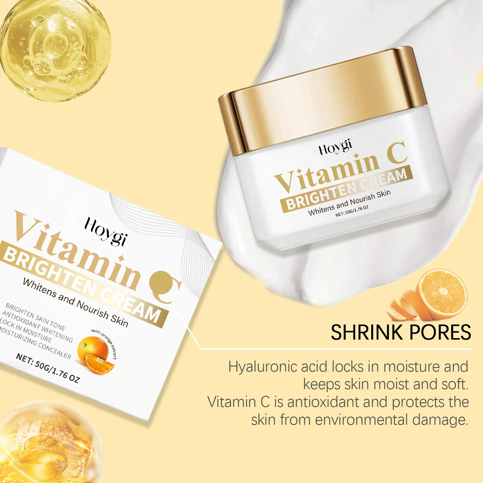 This cream provides the brightening effects of Vitamin C, combined with the hydrating benefits of hyaluronic acid, glycerin, and aloe vera, ensuring that your skin stays moisturized, radiant, and protected throughout the day. Its anti-aging properties help to reduce the appearance of fine lines and wrinkles, leaving your skin looking youthful and fresh.