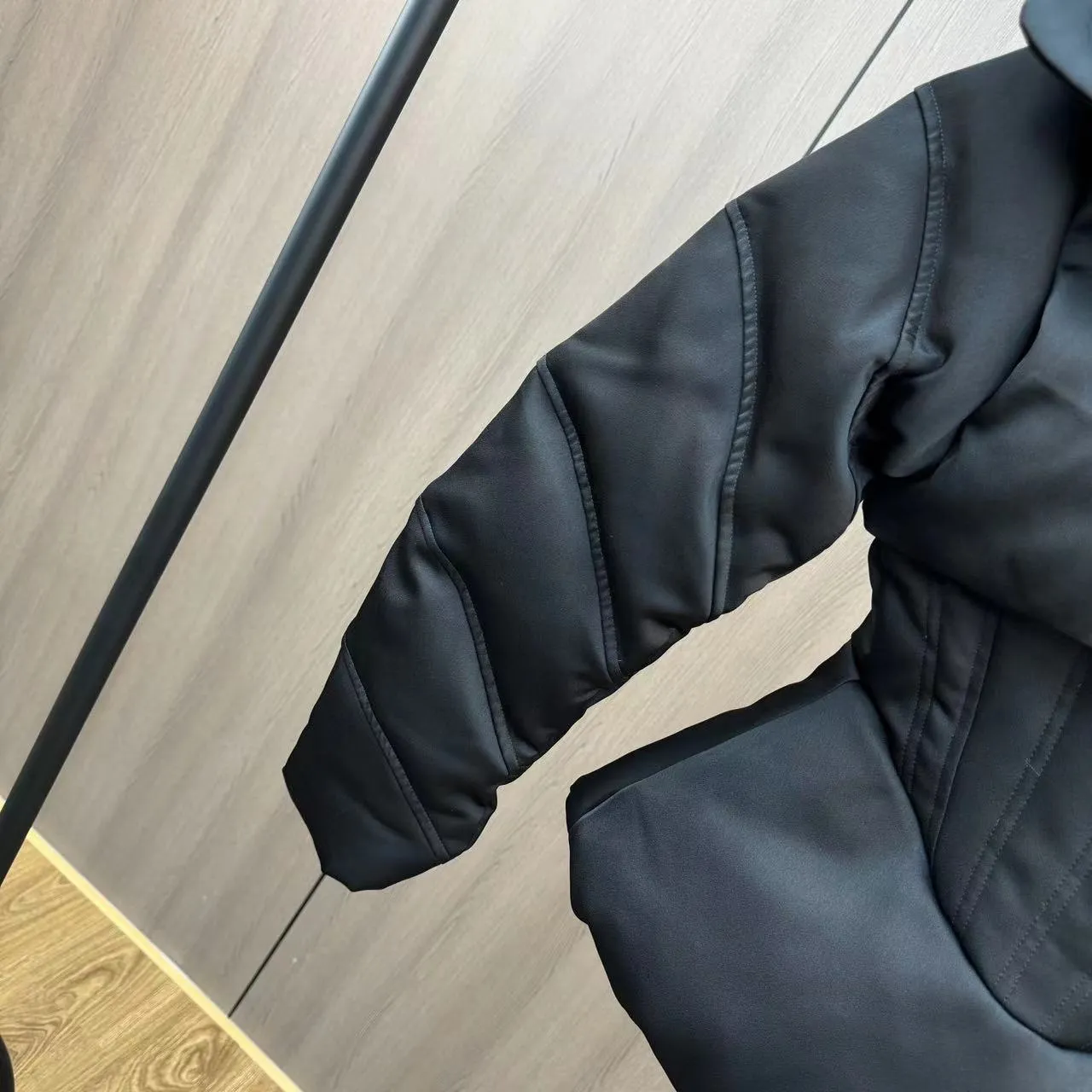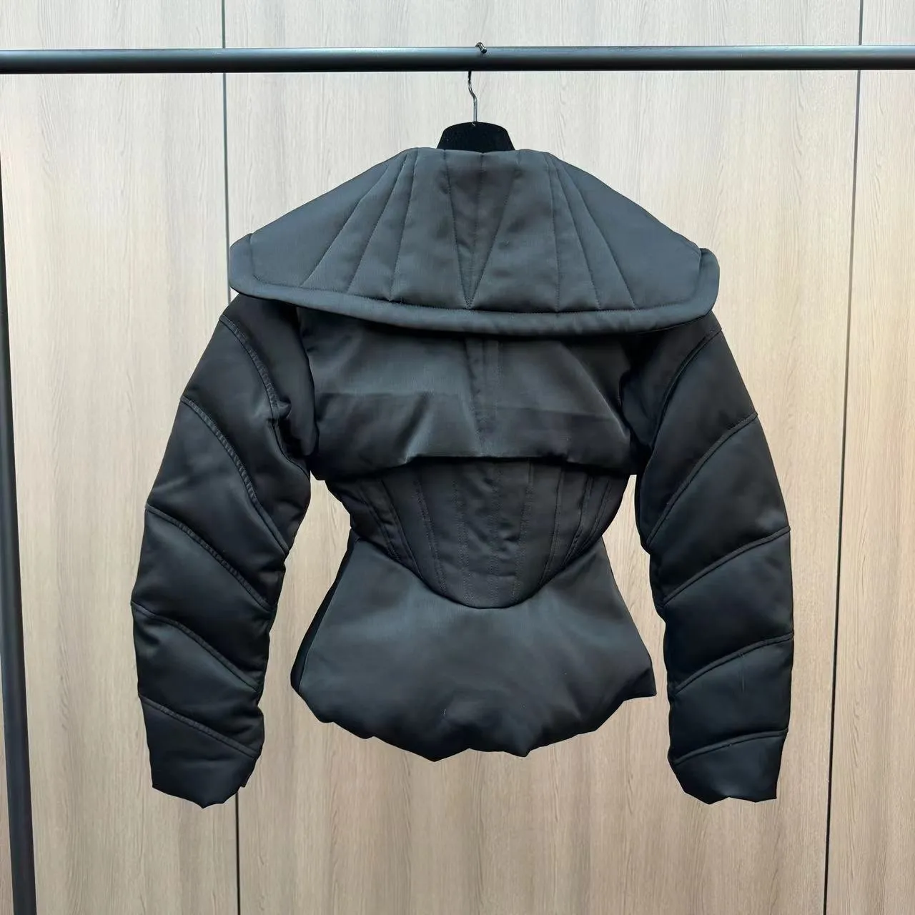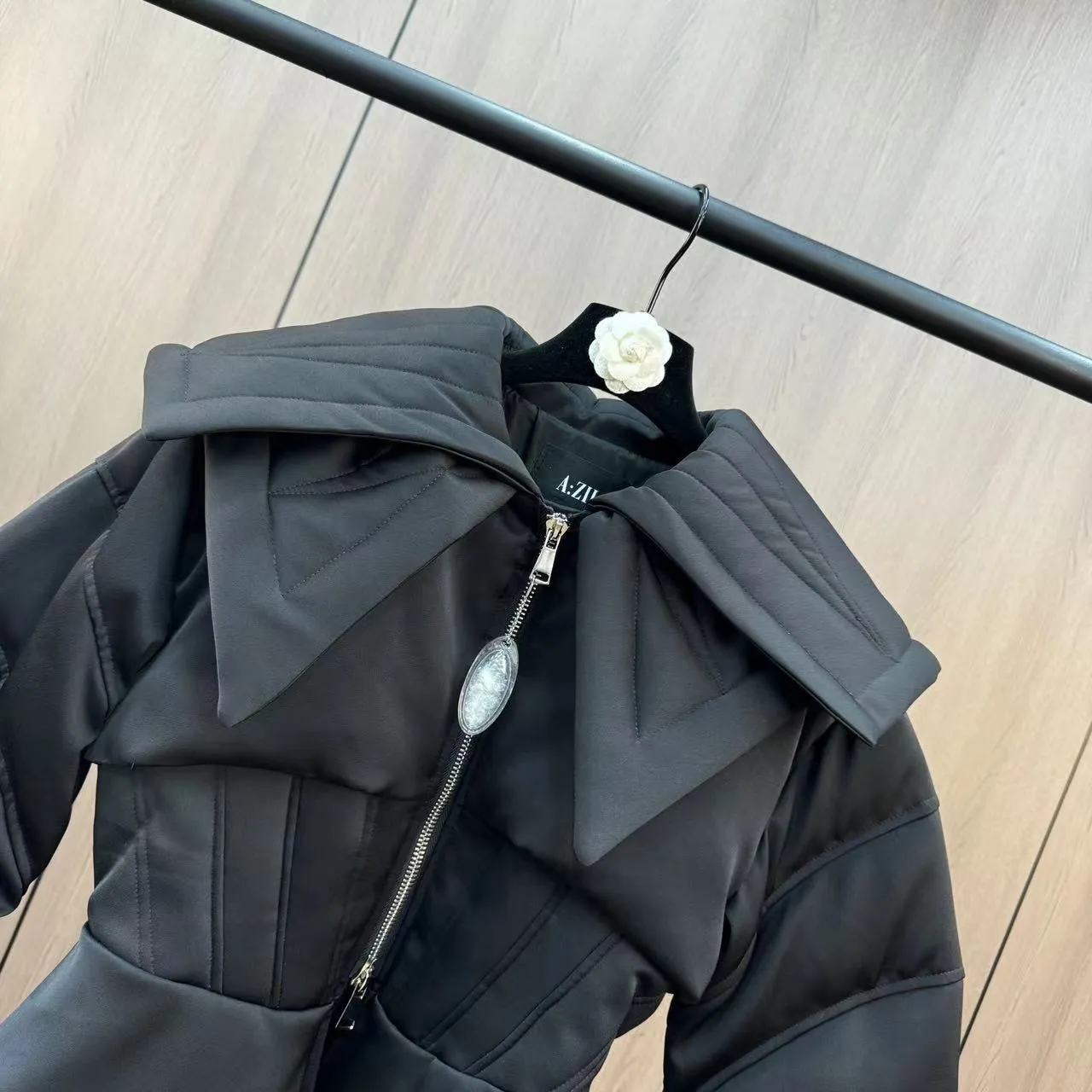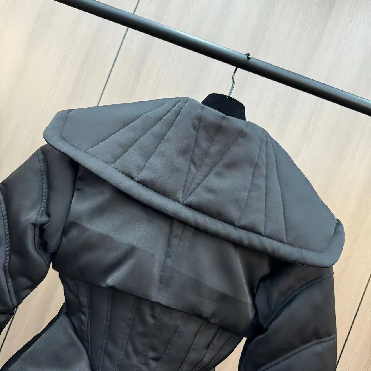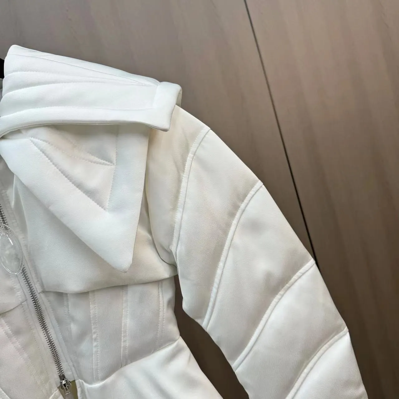 This down jacket is crafted with a flattering waist-slimming design that enhances your silhouette, creating a feminine and elegant look. The bottom slit detail not only adds a modern twist but also ensures ease of movement, making it practical for daily wear. From casual outings to formal gatherings, this jacket is tailored to adapt to any occasion.