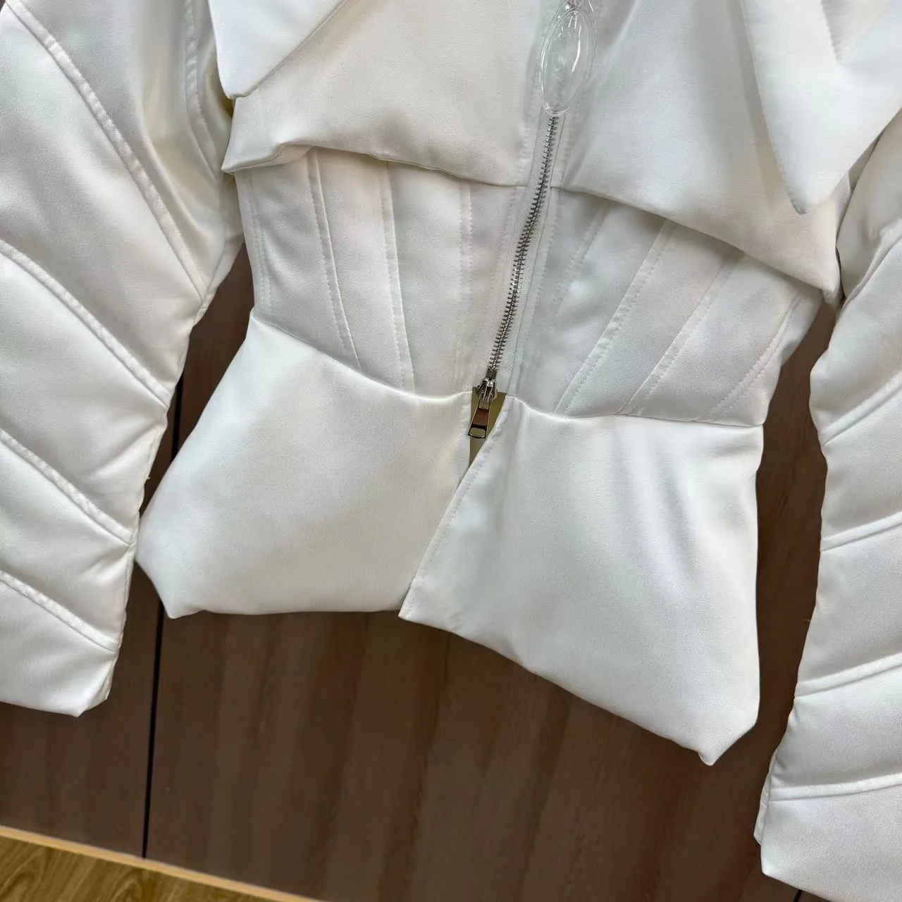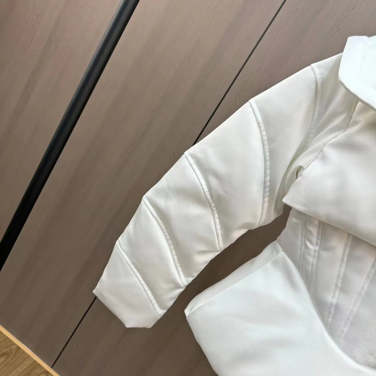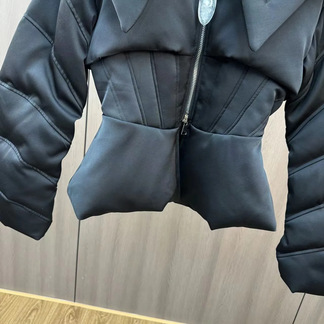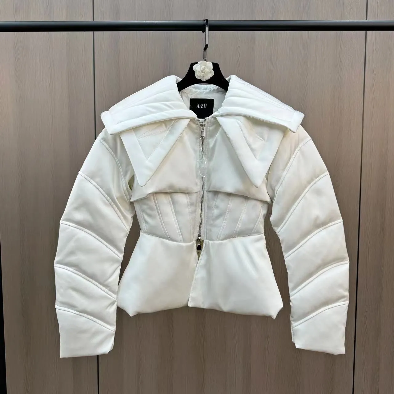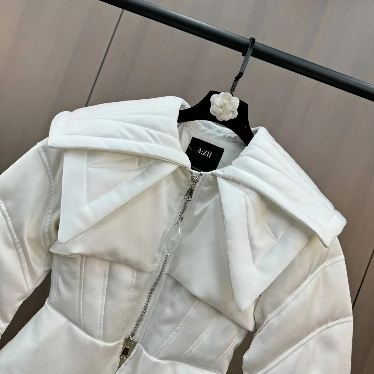 This down jacket is crafted with a flattering waist-slimming design that enhances your silhouette, creating a feminine and elegant look. The bottom slit detail not only adds a modern twist but also ensures ease of movement, making it practical for daily wear. From casual outings to formal gatherings, this jacket is tailored to adapt to any occasion.