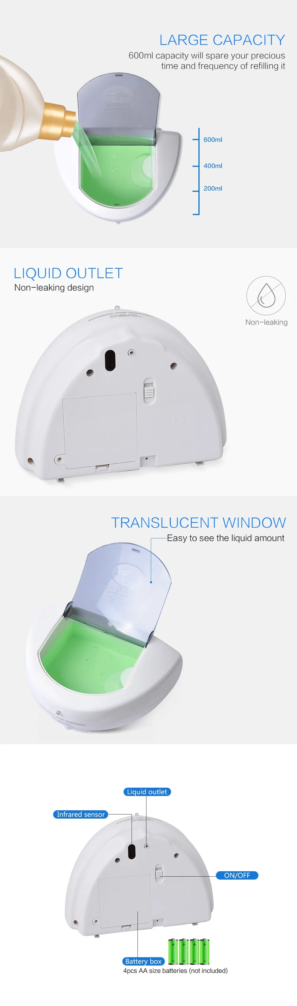 The Wall-Mounted Automatic Soap Dispenser is powered by batteries, eliminating the need for complex wiring or access to electrical outlets. It can be installed anywhere in your home or business, ensuring maximum flexibility and ease of use.