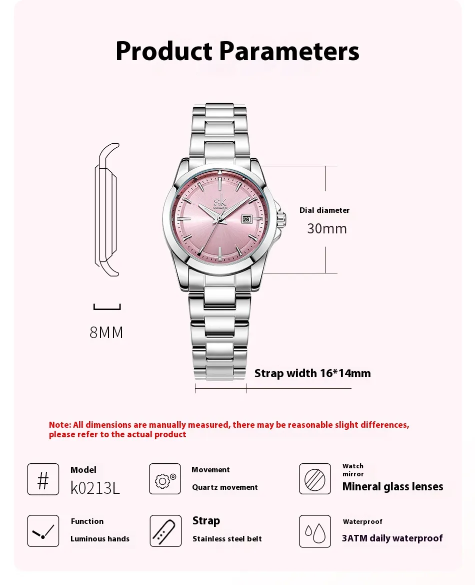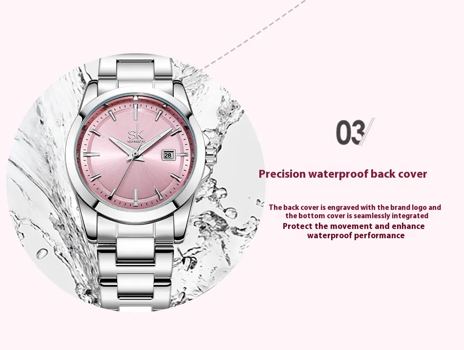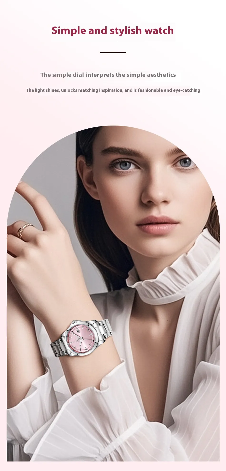 The stainless steel case and bracelet are made from high-quality materials that ensure the watch is not only durable but also resistant to scratches, rust, and discoloration. This makes it a long-lasting investment for women who want a watch that will stand the test of time. The polished finish of the stainless steel adds a luxurious touch, making it an elegant accessory that complements both casual and formal outfits.