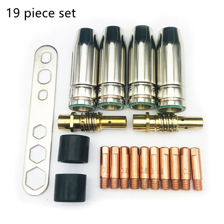 This set includes essential consumables, such as contact tips, gas nozzles, and diffusers, catering to a wide range of welding and cutting tasks.