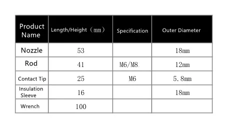 19-piece set: nozzle 4 + connecting rod 2 + contact nozzle 10 + board 1 + insulating sleeve 2