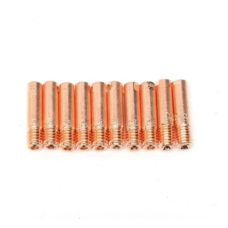 The contact tips are made from durable copper alloys, ensuring excellent electrical conductivity and minimal wear, even during intensive use.