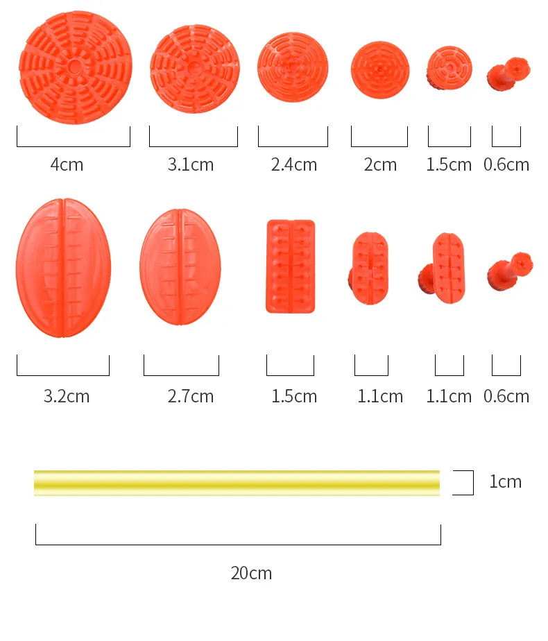 Die Saug Tassen bestehen aus strapazierfähigem Gummi und bieten starken Halt, um Dellen zuverlässig zu entfernen. Das gesamte Set ist so konstruiert, dass es auch unter schwierigen Bedingungen eine hervorragende Leistung bietet.