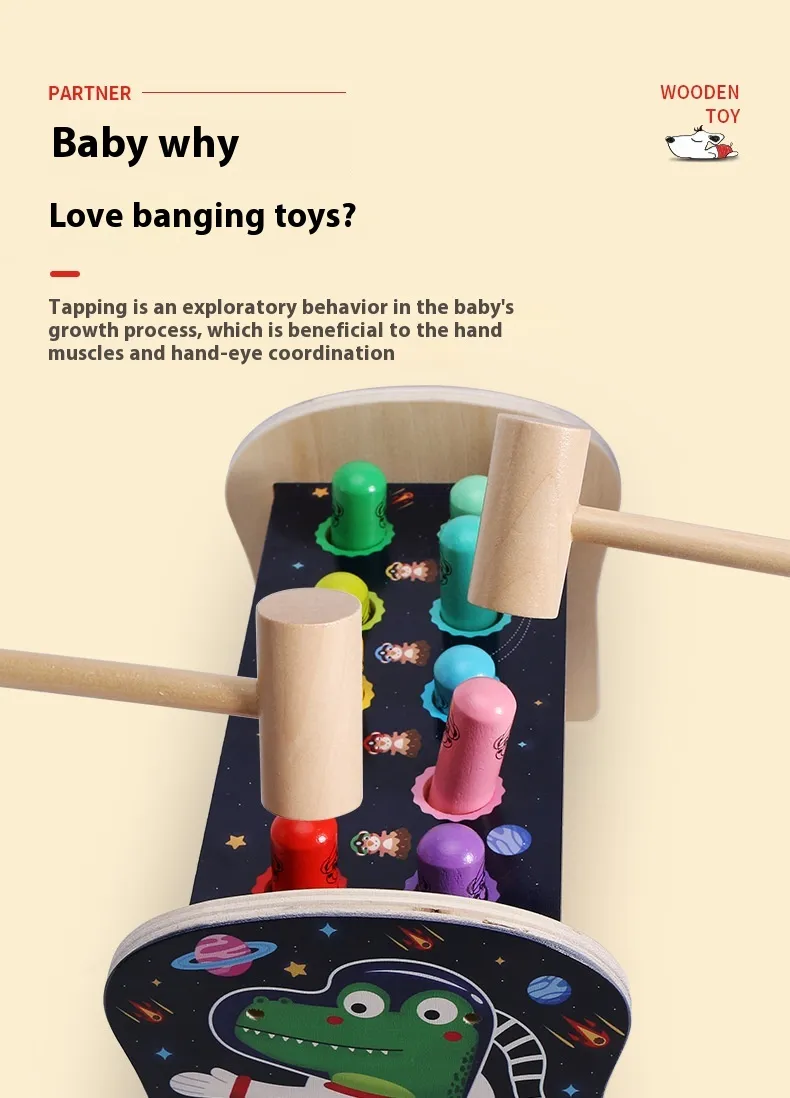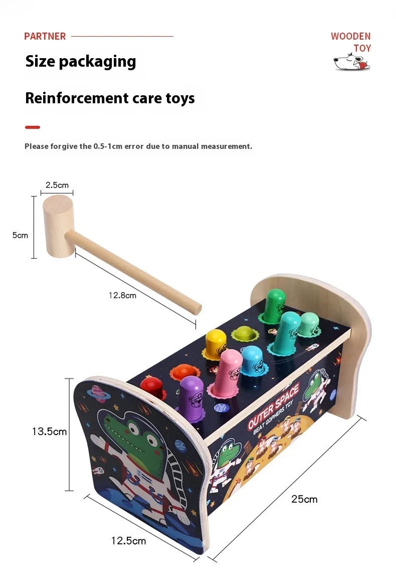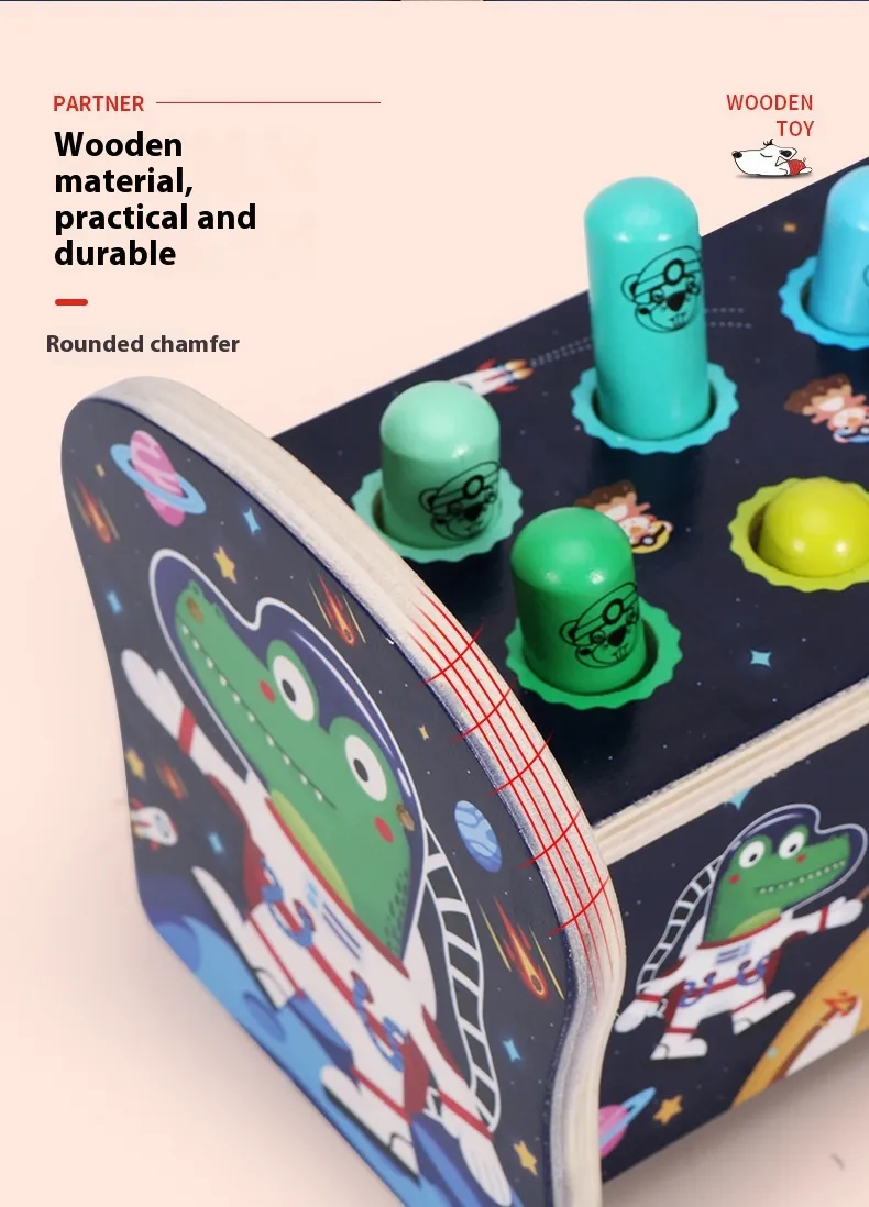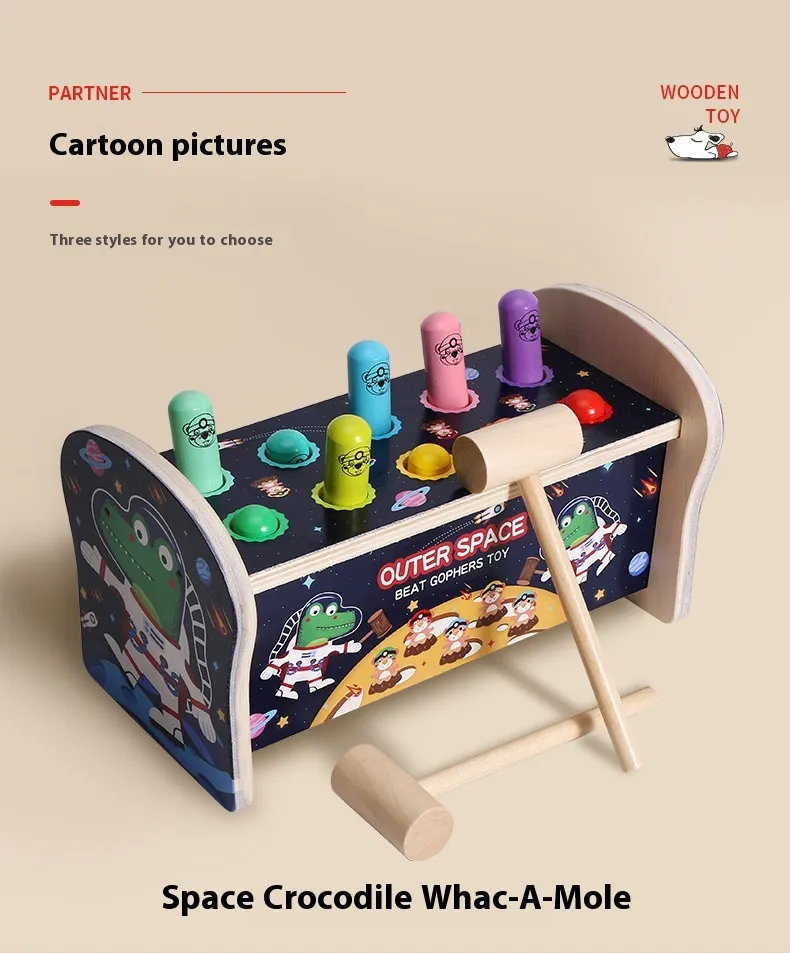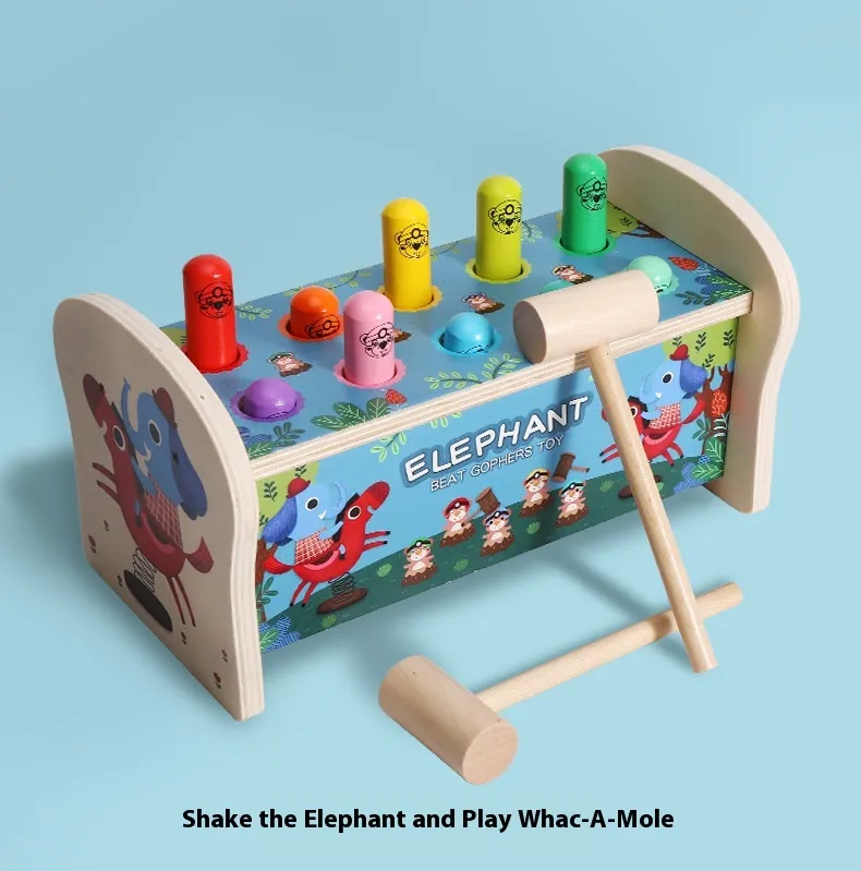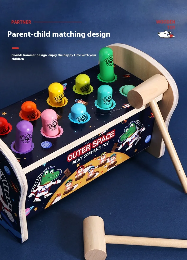Introduce your child to a fun and educational activity that promotes coordination, focus, and motor skills with the Whac-a-mole Early Education Children's Wooden Fun Strike Toy. Inspired by the classic carnival game, this wooden toy transforms the traditional "whack-a-mole" concept into a hands-on, interactive, and safe learning experience for young children. Perfect for both solo play and group play, this toy challenges children to strike the popping moles with a mallet, improving their reaction time, concentration, and fine motor skills.Made from high-quality, eco-friendly wood, the Whac-a-mole Toy is built to withstand active play while being safe for children. Its colorful, engaging design and fun gameplay will capture your child’s attention while also providing valuable educational benefits. Whether it’s used at home, in a classroom, or at a playdate, this toy is sure to provide hours of interactive learning and fun.