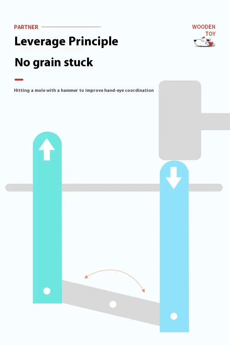 Safety is always a priority, and this toy is made with child-friendly materials. The wooden mallet is smooth and lightweight, making it easy for children to use without risk of injury. The wooden base and moles are sturdy, designed to withstand years of enthusiastic play. The toy's design ensures that there are no small parts that could pose a choking hazard, making it suitable for children as young as 2 years old.