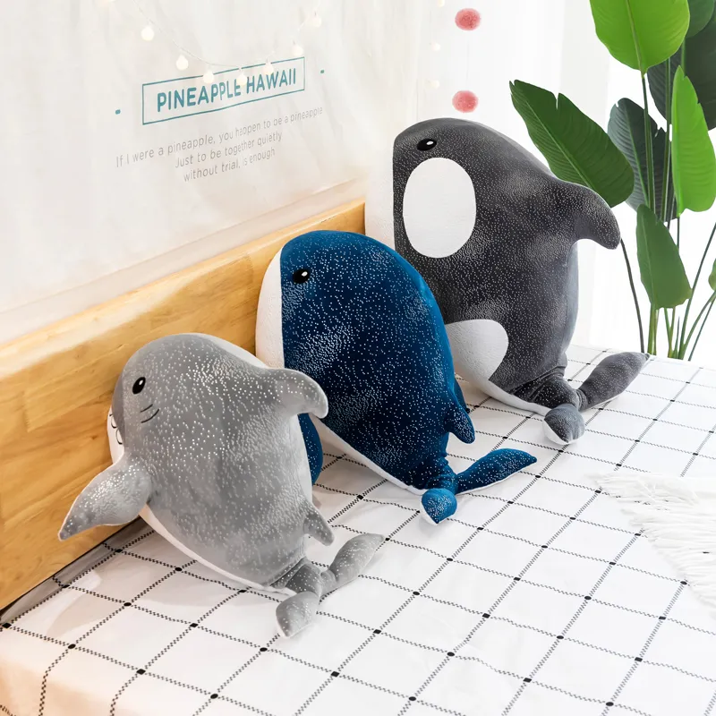 This plush whale toy is versatile in its use. It can serve as a comfort toy for children, a bedtime companion, a decorative piece, or even as a playful pillow during naptime. Its size and softness allow it to be used in various ways, making it a multi-functional toy that can adapt to different needs.