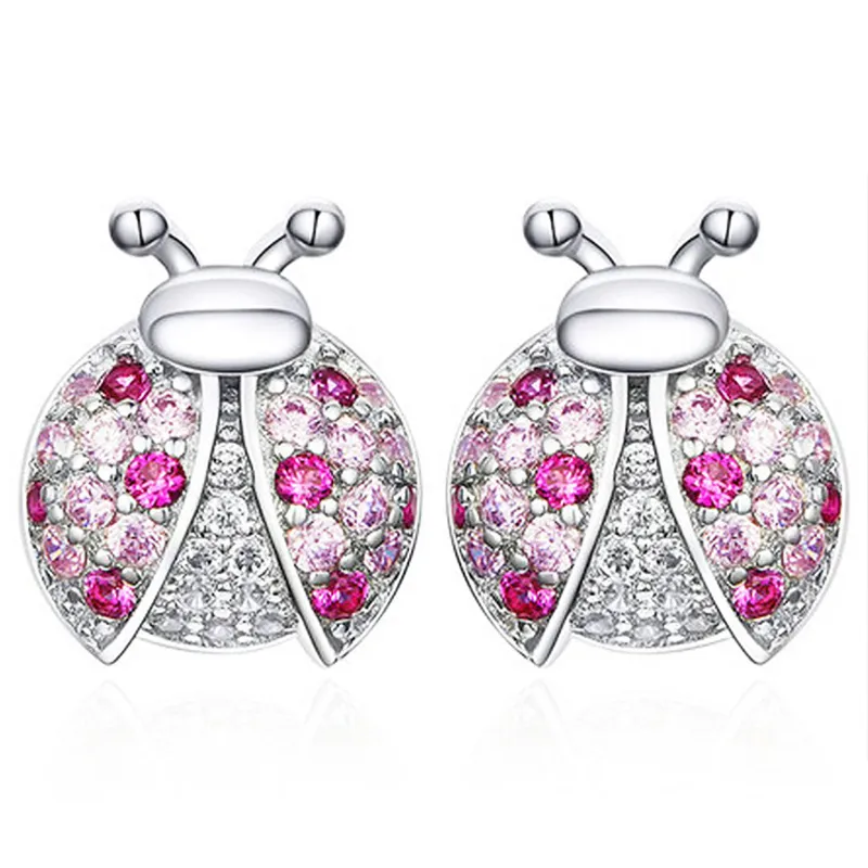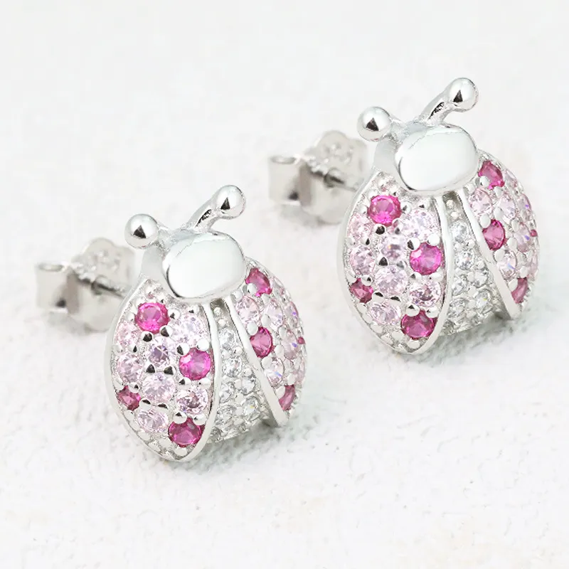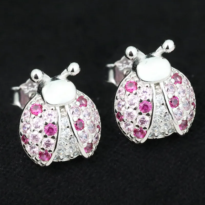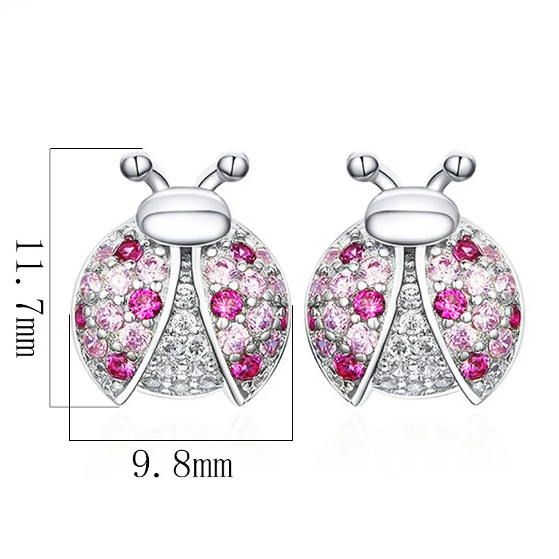 White Copper LADYBIRD Earrings Anti-allergy Girls