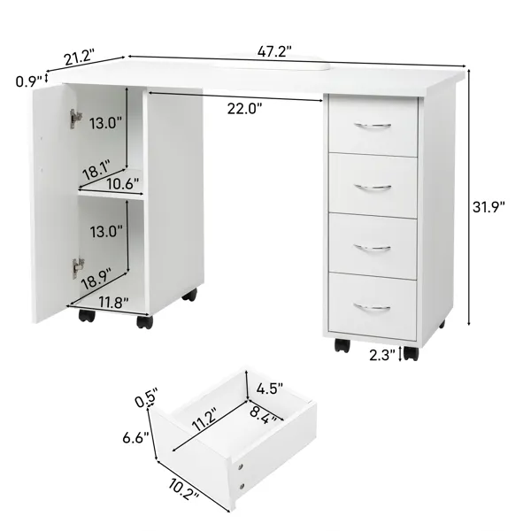 The table also includes some drawers, which can contain many manicure tools. The great functionality makes this table perfect for any beauty