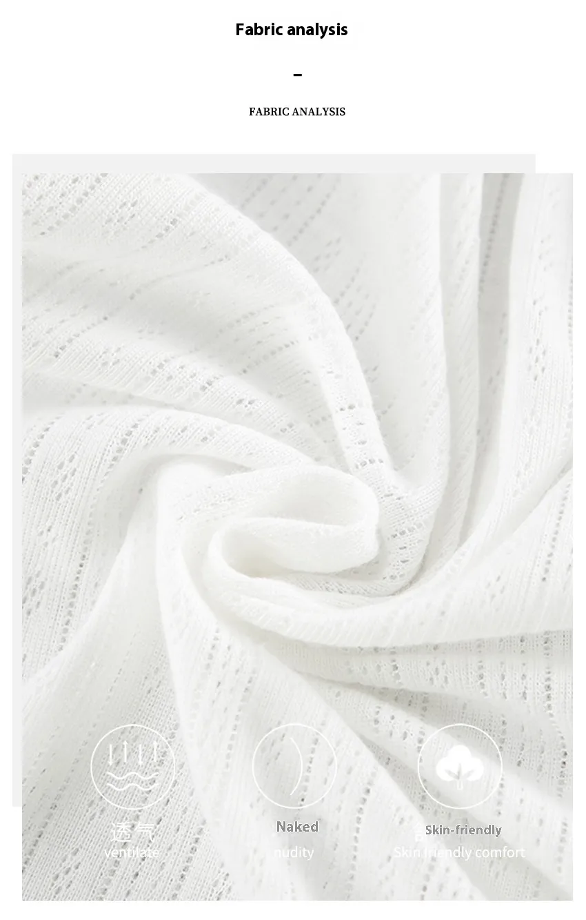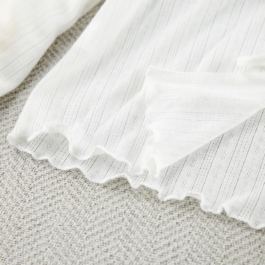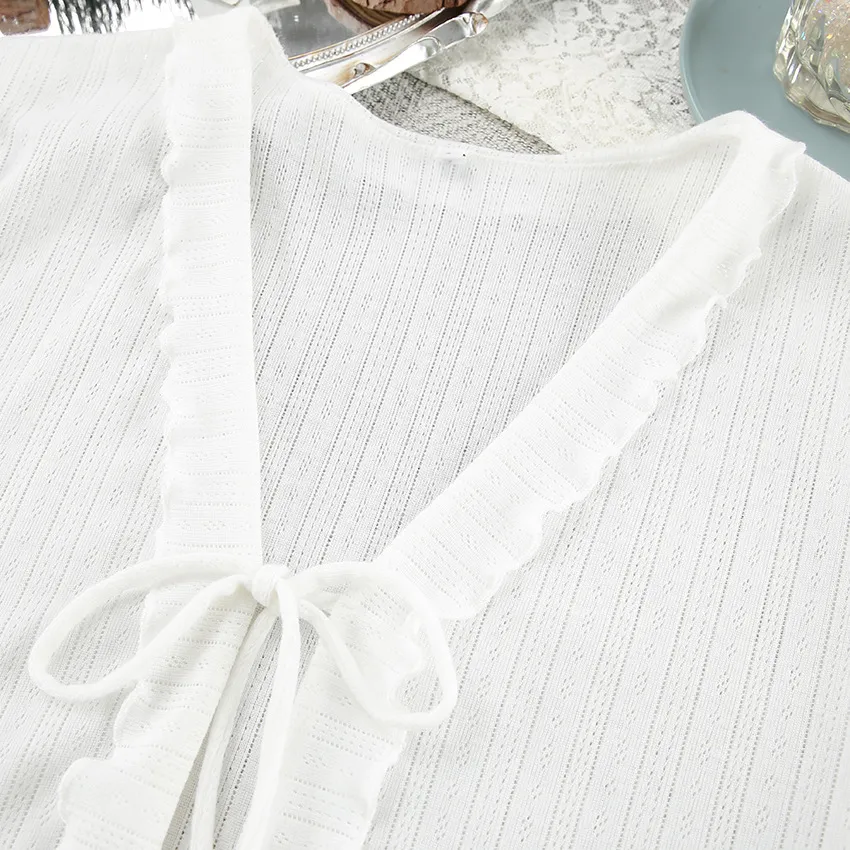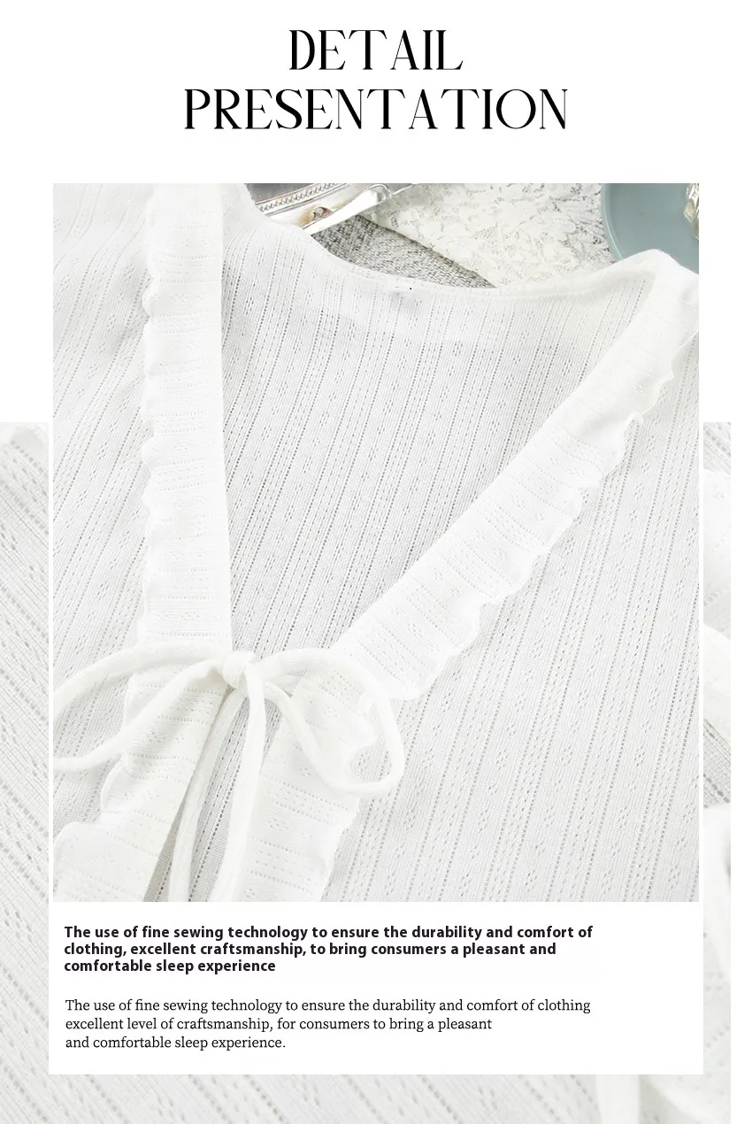 White Hollow-out Jacquard Pajamas Suit Cardigan Long Sleeve Shorts Homewear