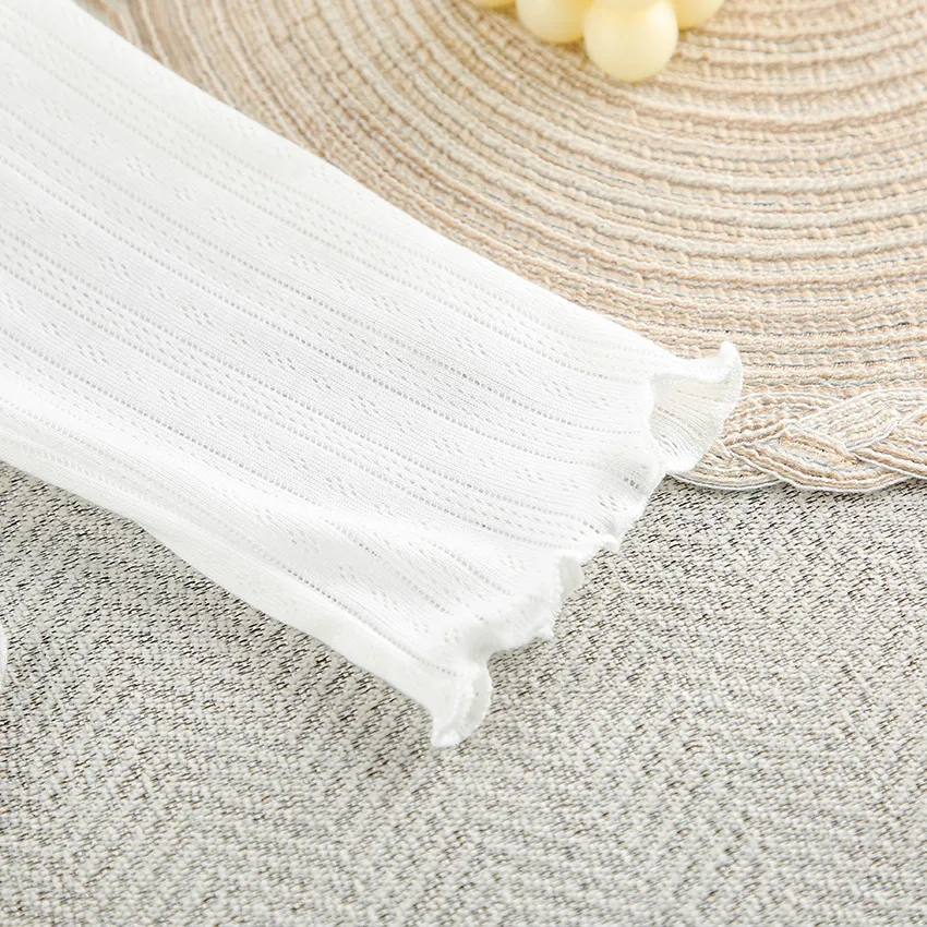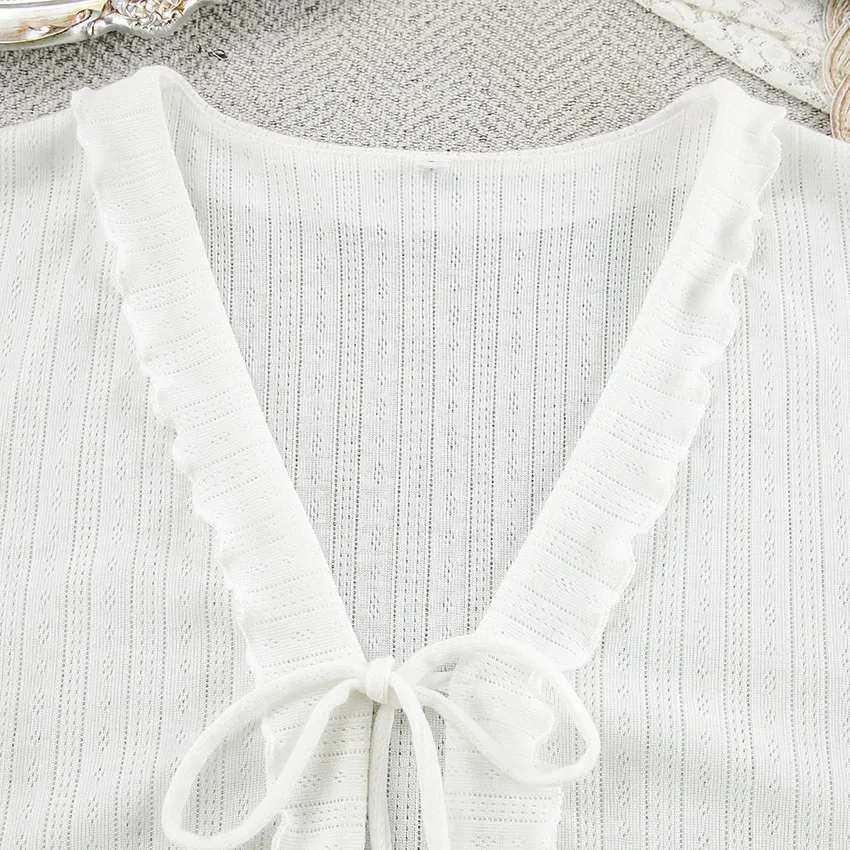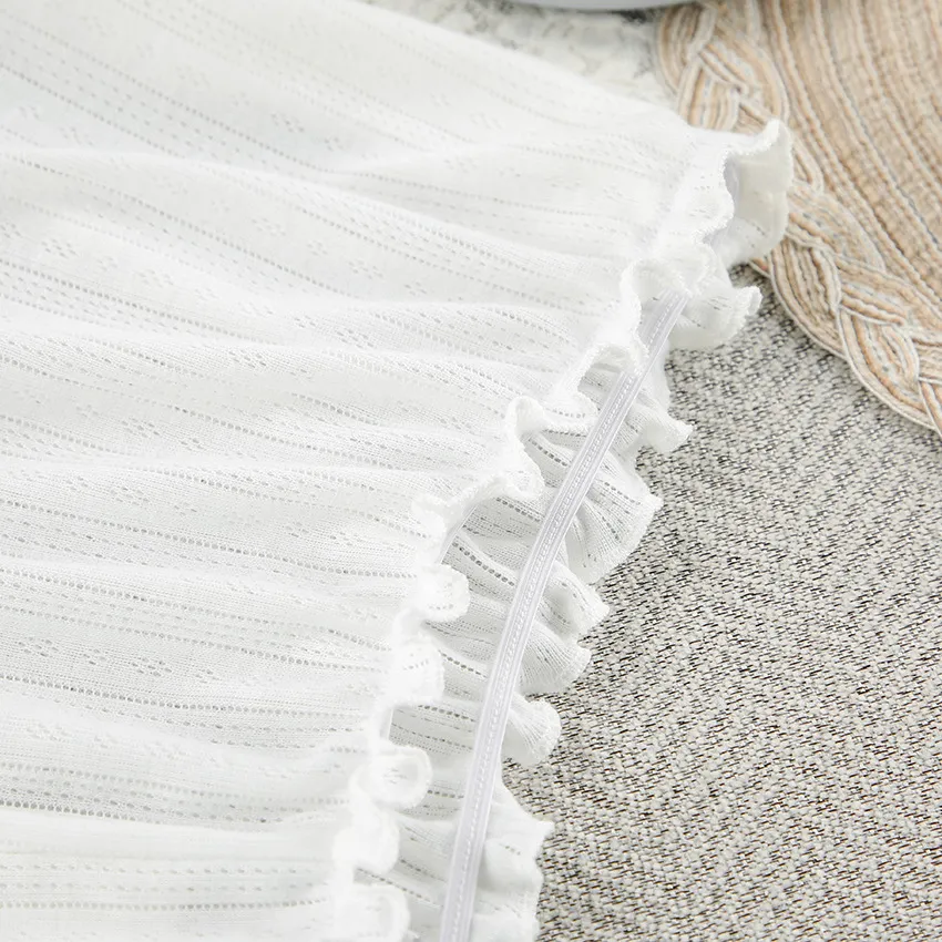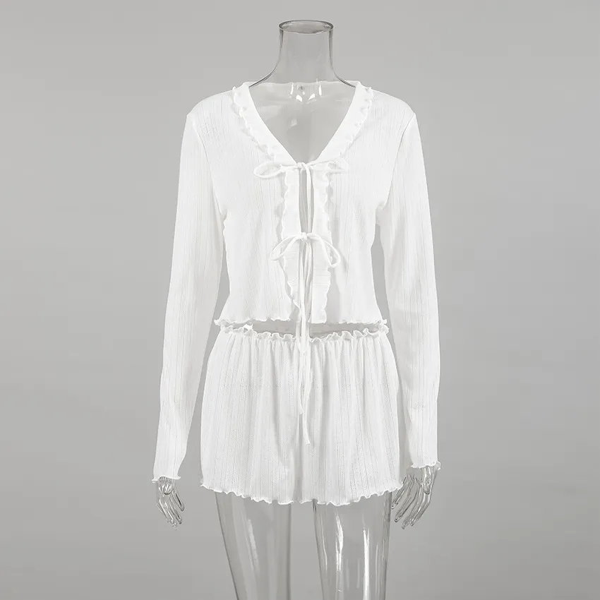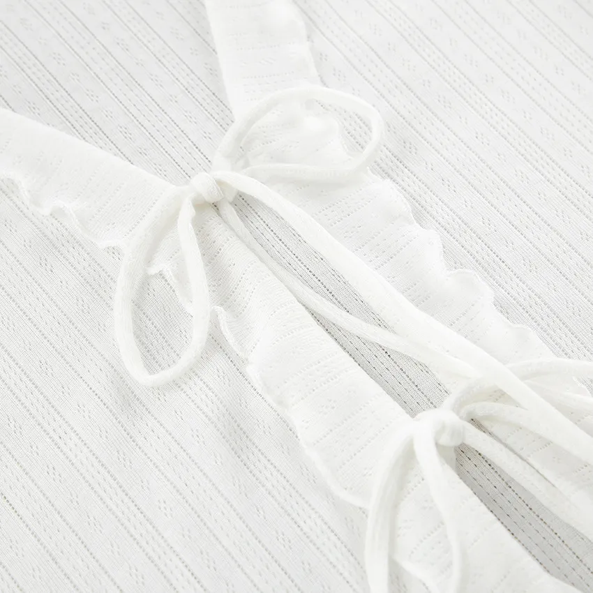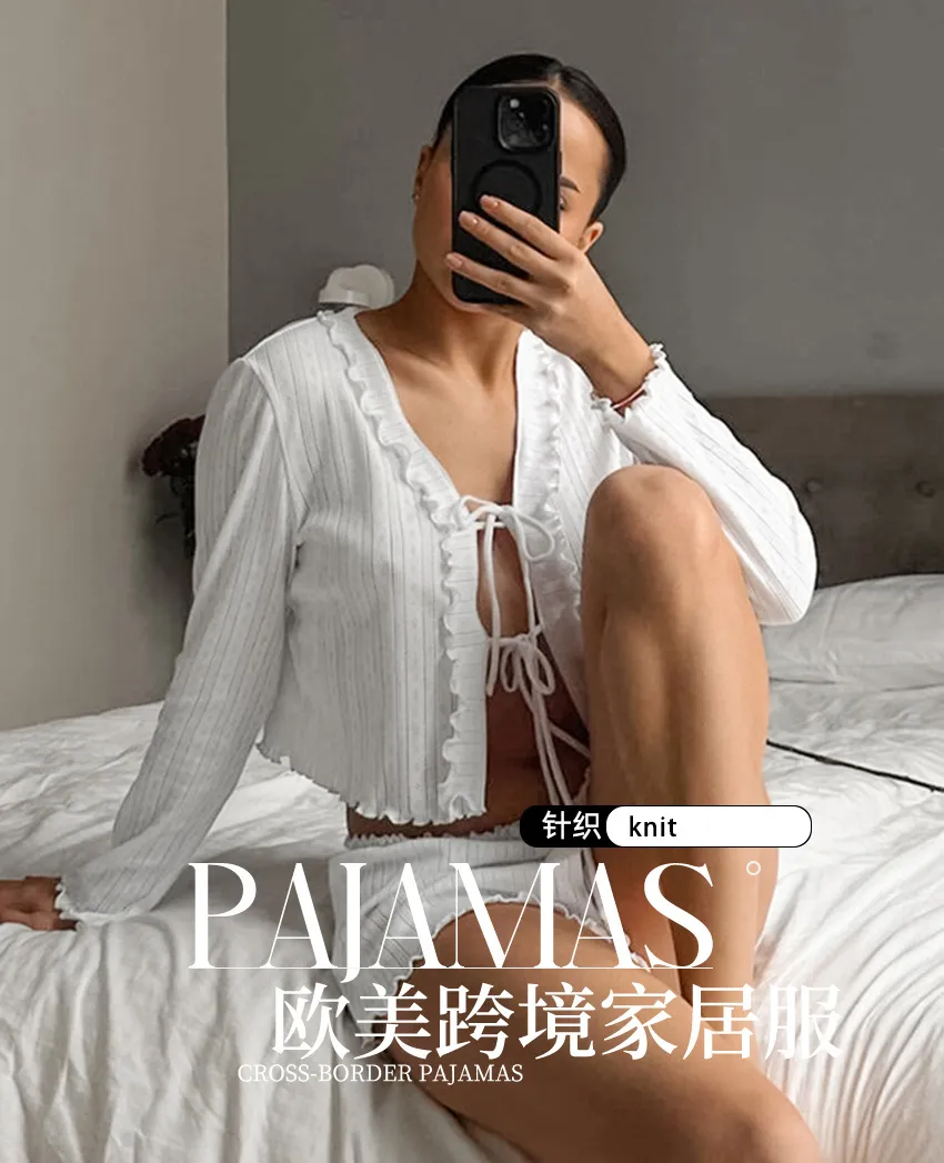 White Hollow-out Jacquard Pajamas Suit Cardigan Long Sleeve Shorts Homewear