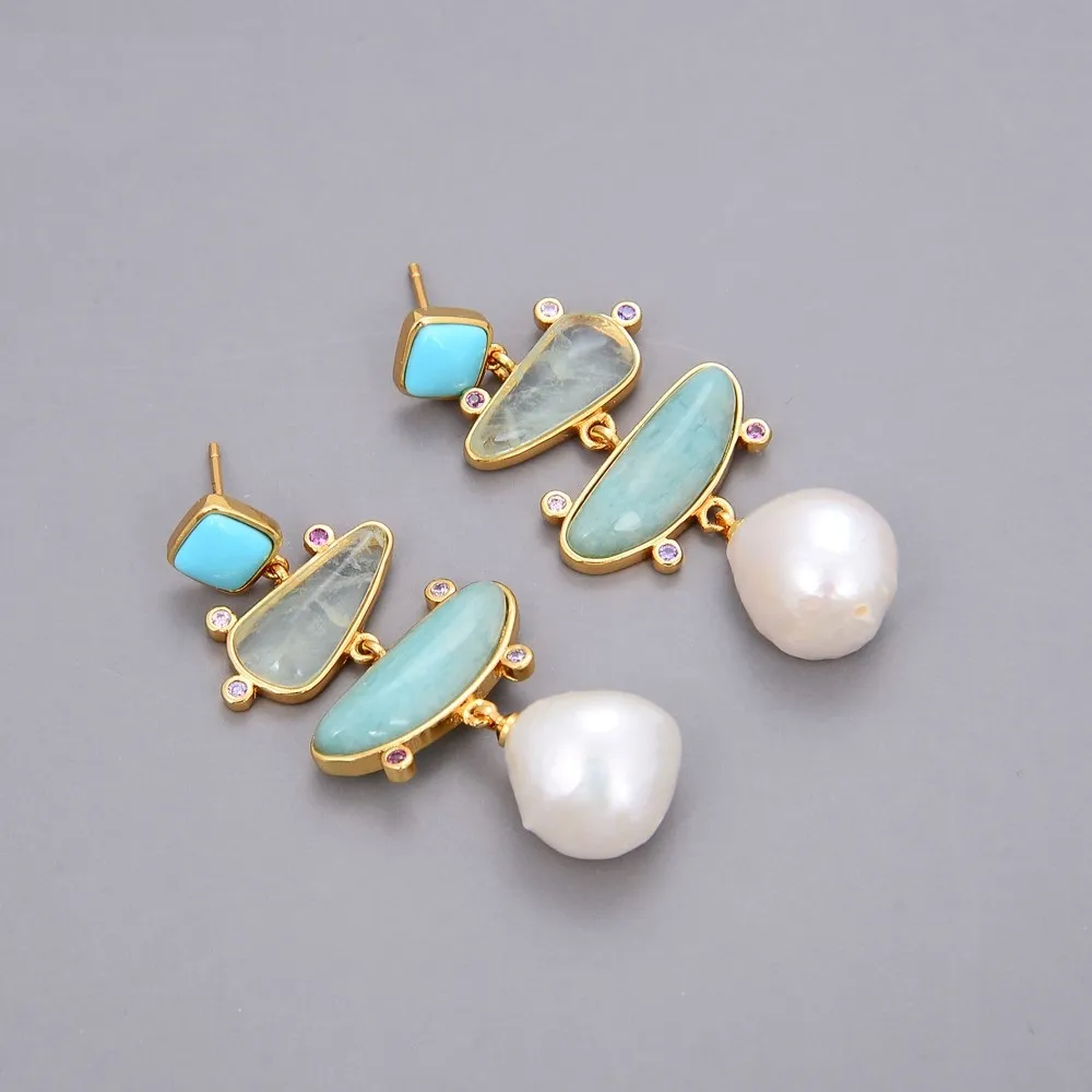 White Pearl Blue Turquoise Turquoise Stud Earrings