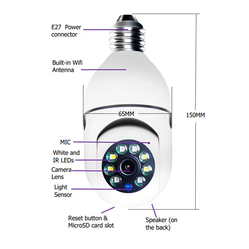 WiFi Camera 1080P Bulb - 4X Zoom, 5G