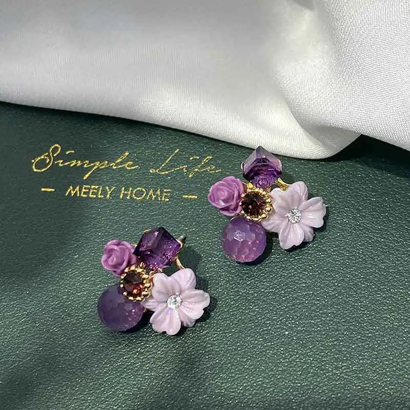 Wild Rose Bouquet Stud Earrings Geometric Purple Wild Flower