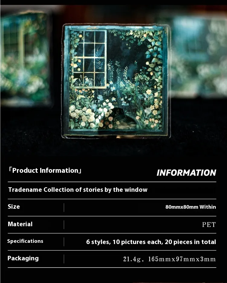In conclusion, the Window Story Series Journal Decorative Source Material Stickers are a must-have addition to your crafting supplies. Featuring beautiful illustrations and made from durable, high-quality material, these stickers help you add a touch of personality, charm, and whimsy to your creative projects. Perfect for journaling, scrapbooking, card-making, and more, they offer a versatile, easy-to-use solution for enhancing your personal creations.