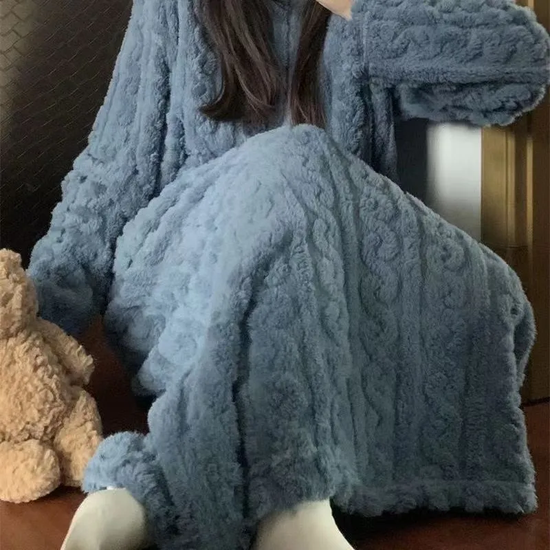Our winter sleepwear is more than just a nightgown—it's a warm hug on a cold night. The thick, plush material is carefully selected to retain heat while maintaining breathability, ensuring you stay cozy without feeling overheated. The long-sleeve design and ankle-length cut provide full coverage, keeping you warm from head to toe. Available in various colors and sizes, this nightgown caters to different preferences, allowing you to express your personal style while enjoying maximum comfort.