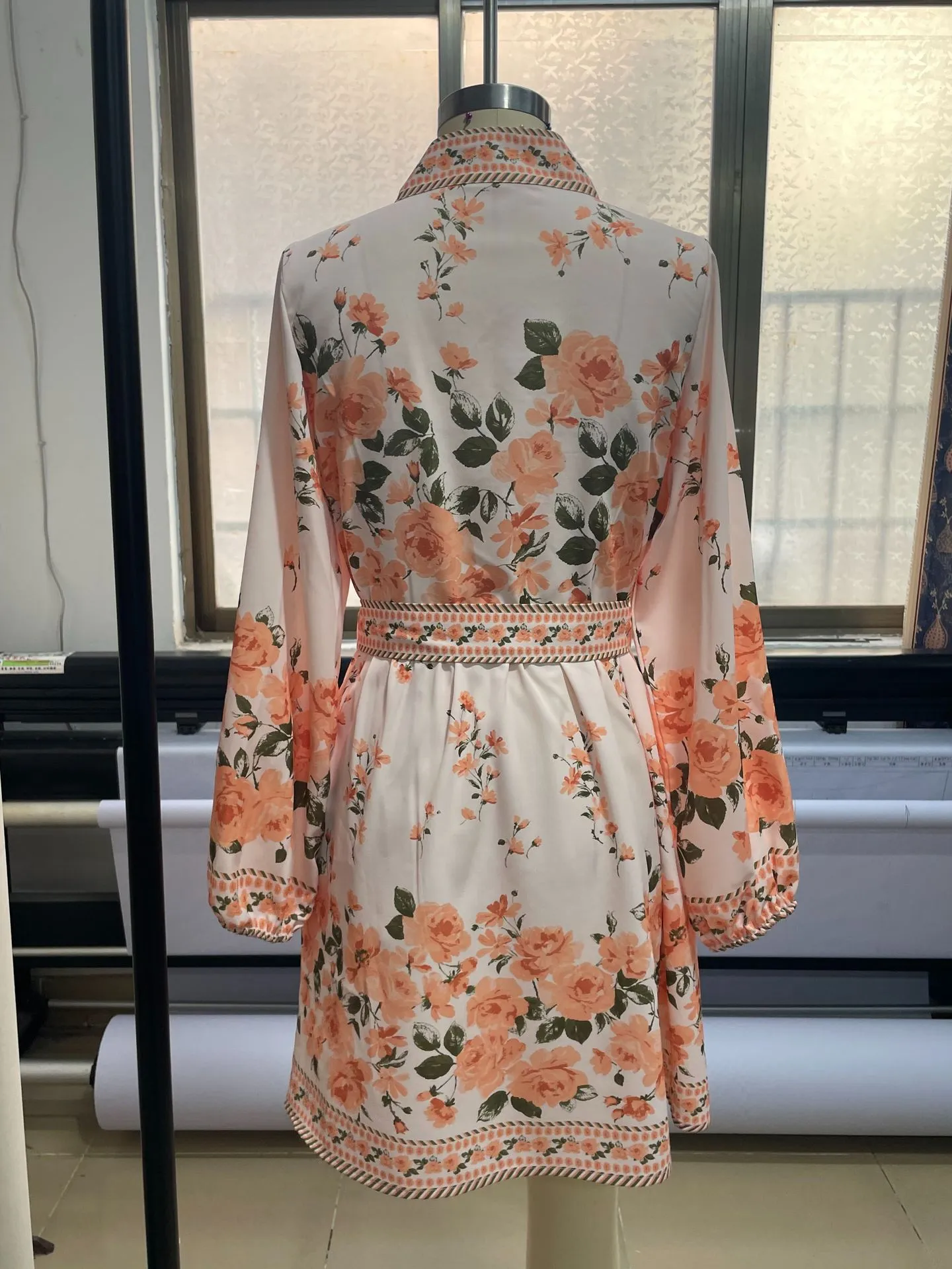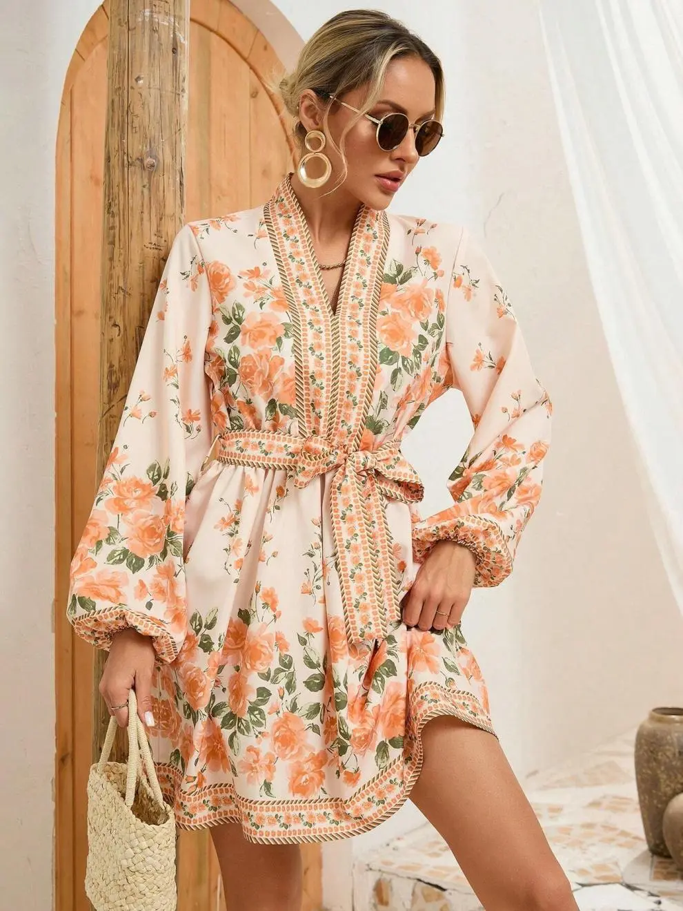 Winter European and American Flower Printing Long Sleeve Tied Dress: Chic, Comfortable, and Stylish for Cold Weather