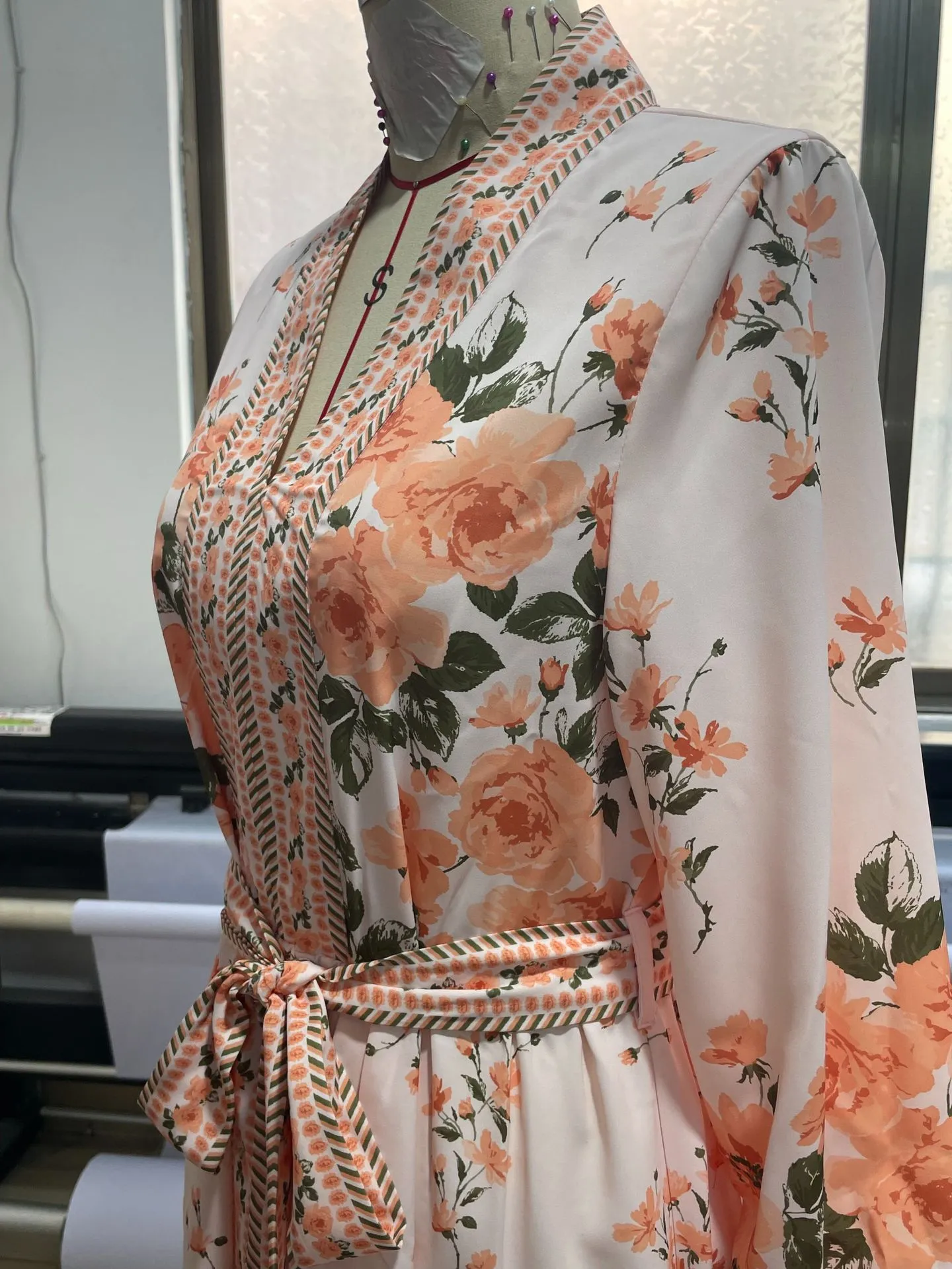 In conclusion, the Winter European and American Flower Printing Long Sleeve Tied Dress is the perfect addition to your winter wardrobe, combining style, warmth, and comfort in one beautiful piece. The elegant floral print, flattering tied waist, and long sleeves ensure that you stay warm and chic during the colder months. Whether dressing for a special event or a casual outing, this dress provides both style and functionality, making it an essential choice for the winter season.