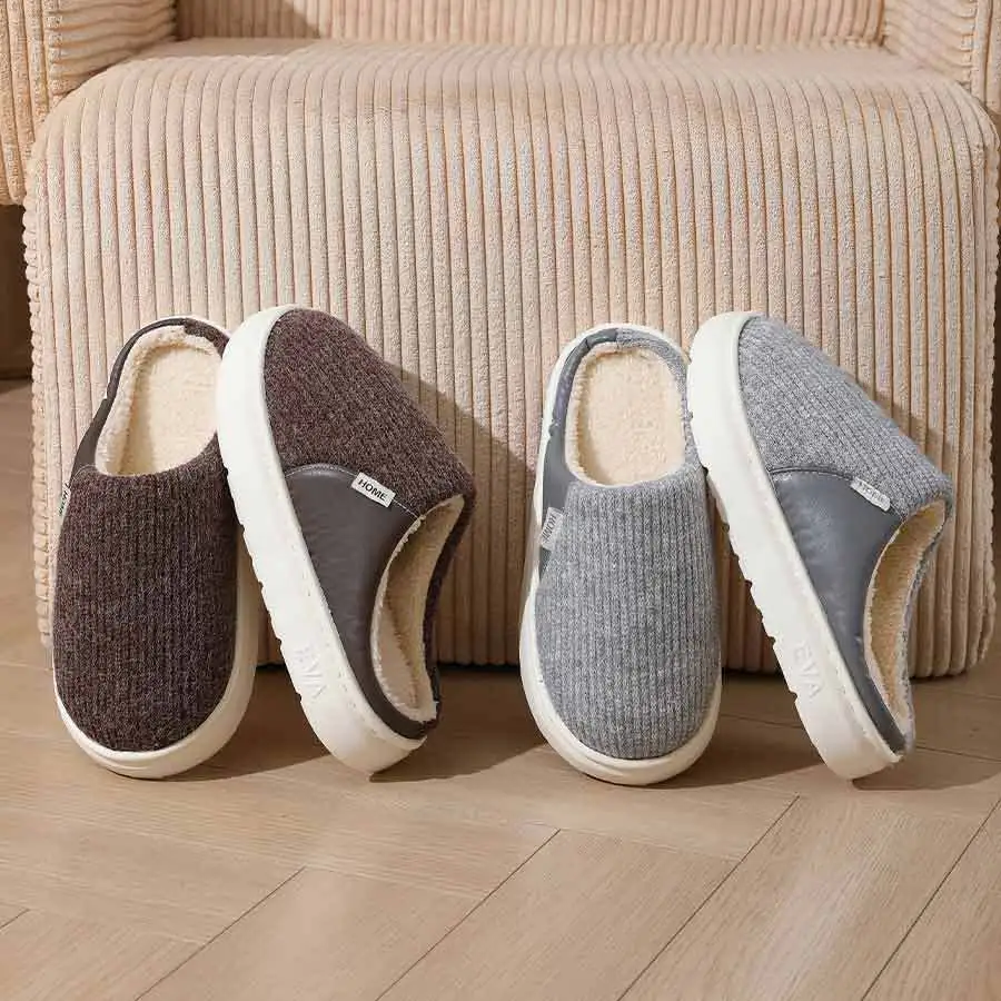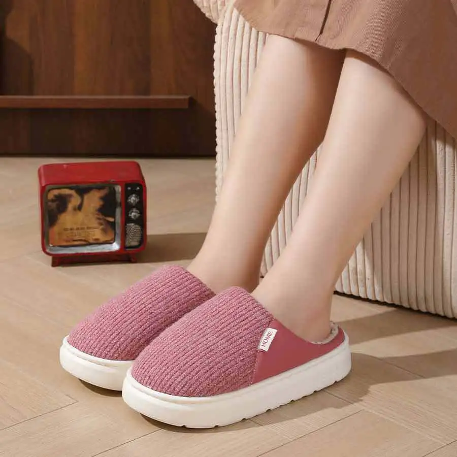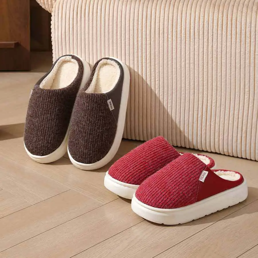 Winter Warm Plush Home Slippers Lightweight Thick Bottom Silent Non-slip Floor Bedroom Slippers Couple House Shoes Women Men
