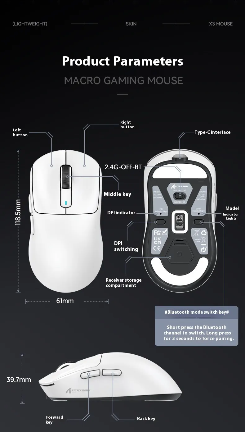 - Versatility: Three connectivity modes allow you to use the mouse across various devices and environments.