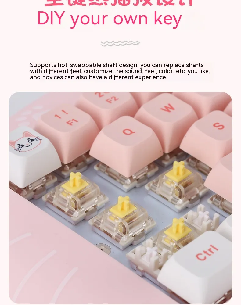 Experience the perfect blend of performance and style with our Wireless Bluetooth E-sports Mini Mechanical Keyboard. Crafted for e-sports enthusiasts and office workers alike, this compact keyboard brings a playful aesthetic to your setup with its cute design while delivering the precision and speed of mechanical switches. The wireless Bluetooth capability ensures you can connect seamlessly to multiple devices, providing the flexibility to switch between gaming and productivity tasks effortlessly. With its durable, responsive keys, this mini keyboard is perfect for fast-paced e-sports gaming, ensuring every keystroke is registered instantly, giving you a competitive edge.
