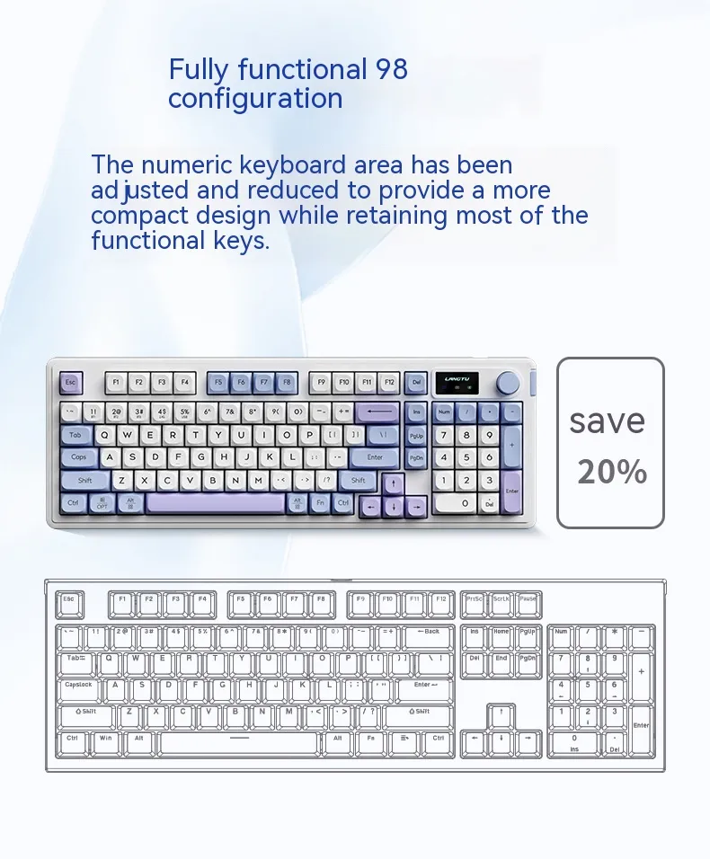 The sleek, modern design of the keyboard complements any desktop or gaming setup. With its clean lines and minimalist style, it adds a touch of sophistication to your workspace or gaming environment, making it not only functional but also an aesthetic addition to your setup.