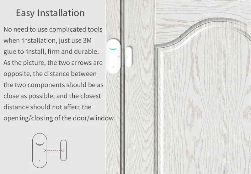 The wireless door sensor is designed for quick and simple installation. It can be easily mounted on doors, windows, or any other entry
