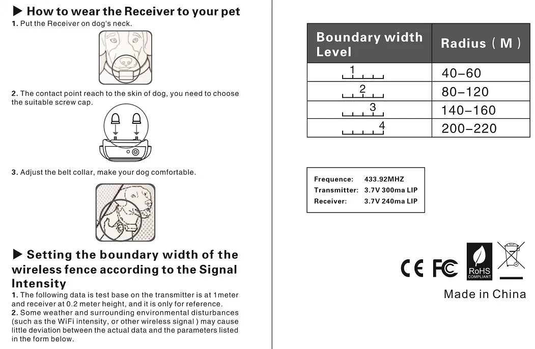 Each receiver comes with 2 sets of metal extension contact probes Suitable for all types of dogs, small medium and large with neck