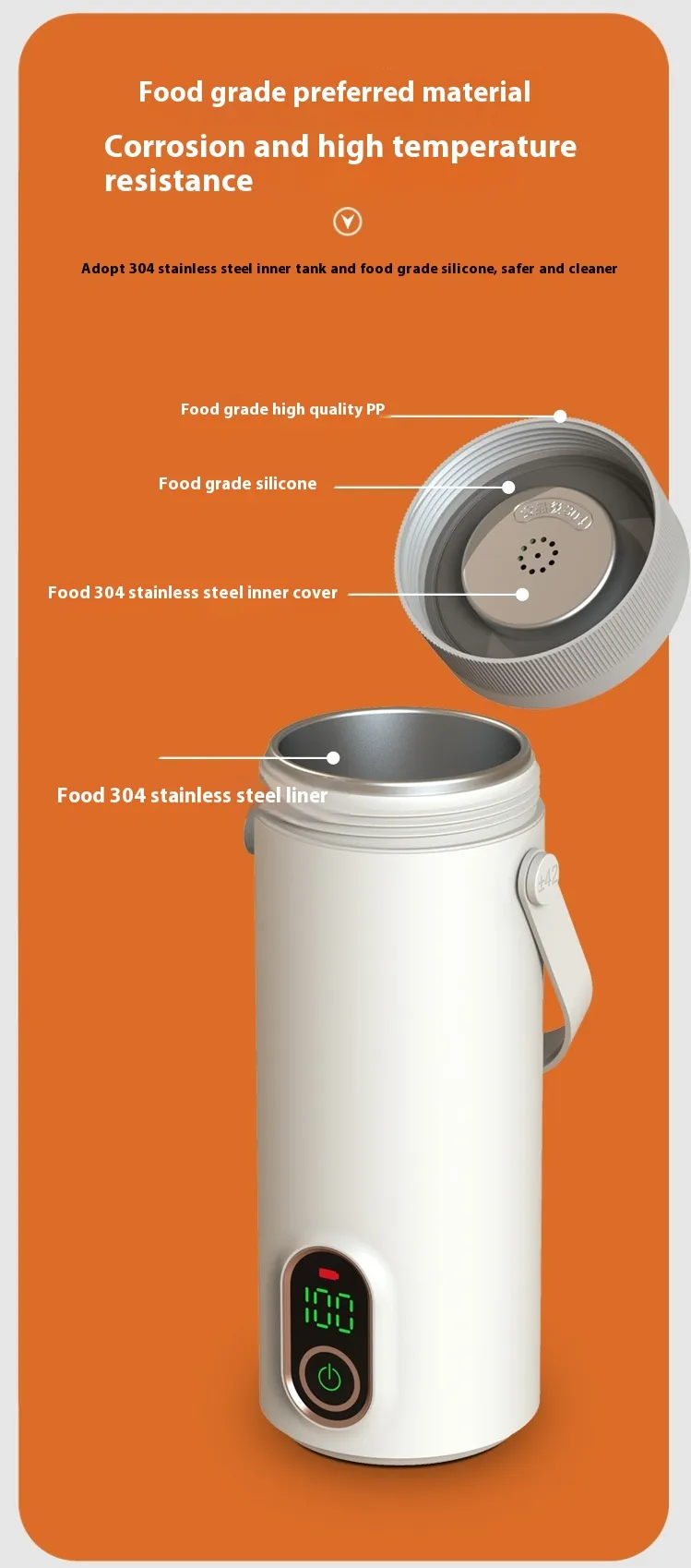 This electric cup comes with a heating element that keeps your beverages at the perfect temperature for extended periods. Whether you prefer your coffee, tea, or hot water to stay warm throughout the day, the cup's electric heating system ensures that your drinks remain at the ideal warmth. No need to worry about cold coffee or tea during long meetings or travel.