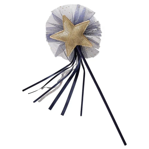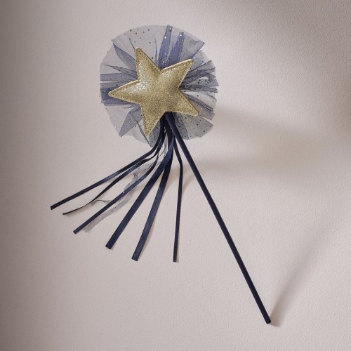 This wizard wand is made from navy tulle, complete with a gold star and and navy ribbon.