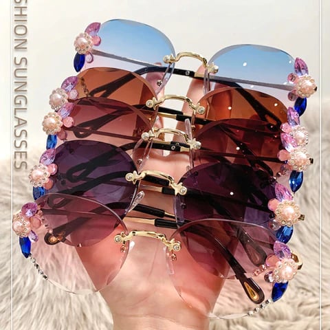 Woman Rimless Diamond Sunglasses